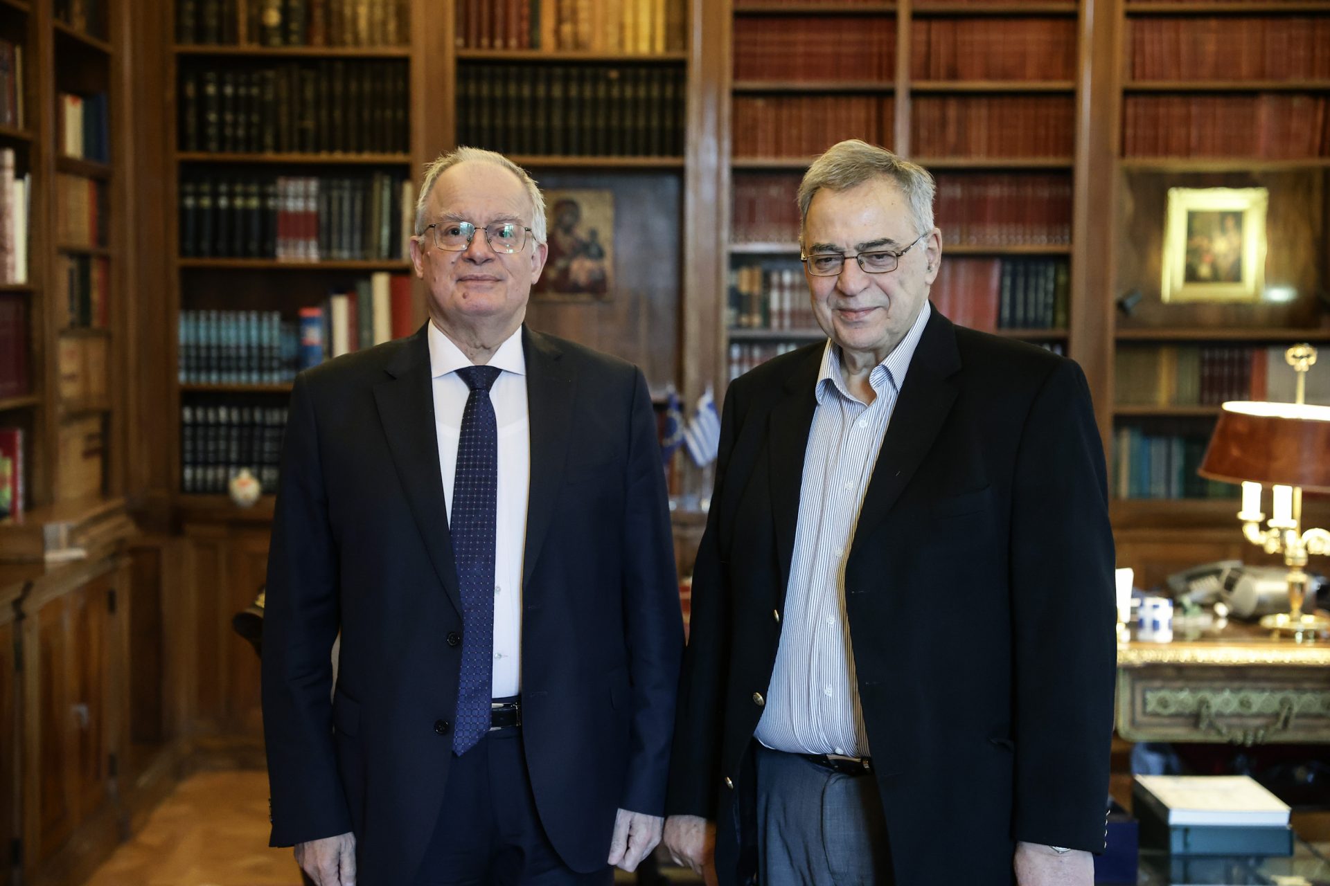 Ο Πρόεδρος της Δημοκρατίας Κωνσταντίνος Αν. Τασούλας συναντήθηκε με τον Ομότιμο Καθηγητή του Οικονομικού Πανεπιστημίου Αθηνών και πρώην υπουργό Οικονομικών Νίκο Χριστοδουλάκη. Οι κ.κ. Τασούλας και Χριστοδουλάκης αντάλλαξαν