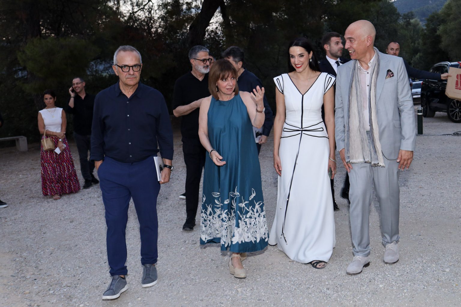 Στην Επίδαυρο για την παράσταση «Ιππόλυτος» 08/07/2023 Η Πρόεδρος της Δημοκρατίας Κατερίνα Σακελλαροπούλου παρακολούθησε στο Αρχαίο Θέατρο Επιδαύρου την παράσταση του Εθνικού Θεάτρου «Ιππόλυτος» του Ευριπίδη, σε σκηνοθεσία Κατερίνας Ευαγγελάτου. Στη συνέχεια,