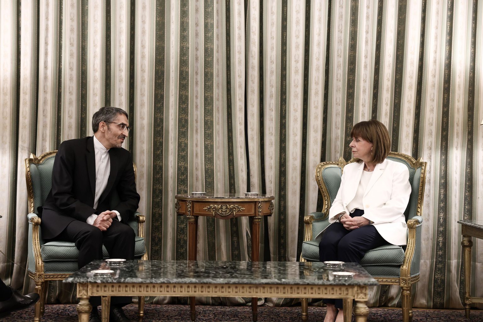 Τελετή επίδοσης διαπιστευτηρίων νέων Πρέσβεων 14/07/2023 Η Πρόεδρος της Δημοκρατίας Κατερίνα Σακελλαροπούλου δέχθηκε διαδοχικά τα διαπιστευτήρια των νέων Πρέσβεων, της Ισλαμικής Δημοκρατίας του Ιράν Malek Hossein Givzad, της Ανατολικής Δημοκρατίας της