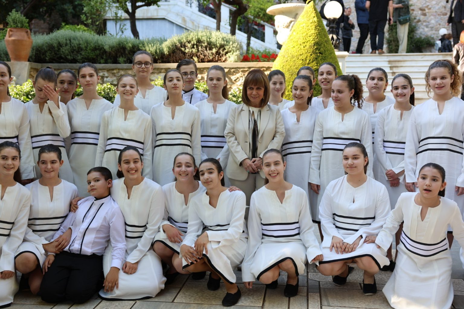 Οι σολίστ Μυρτώ Μποκολίνη και Νικόλας Καραγκιαούρης, η Παιδική Χορωδία Εθνικής Λυρικής Σκηνής και μαθητές και μαθήτριες από το Ουκρανικό σχολείο Αθήνας, στο πλαίσιο του