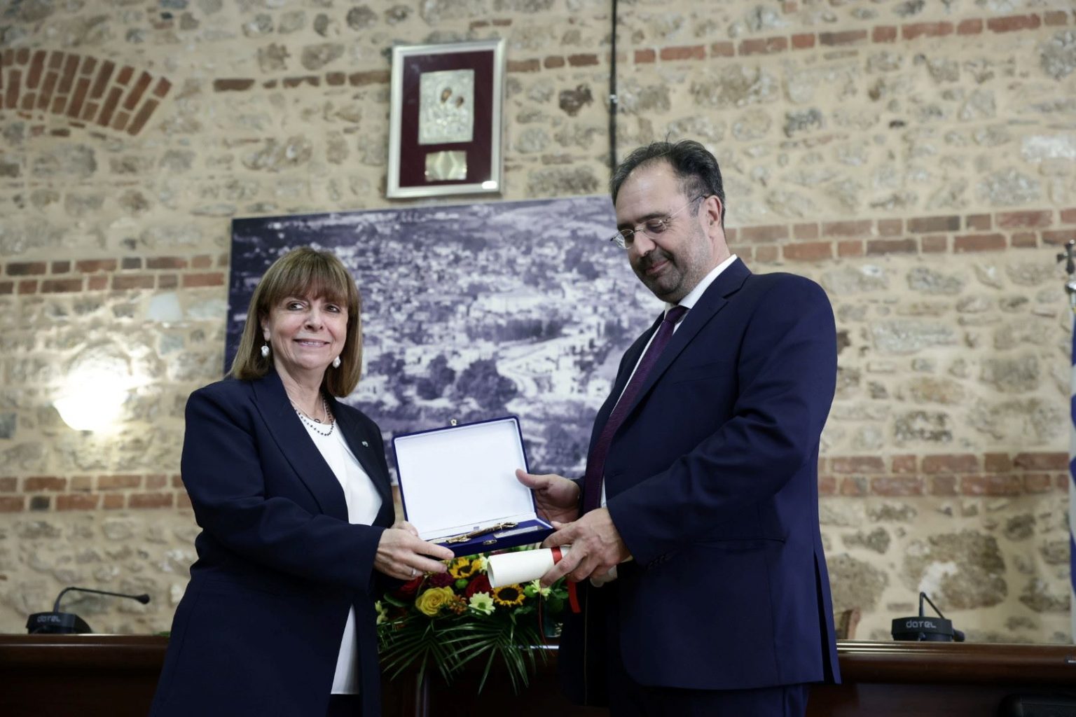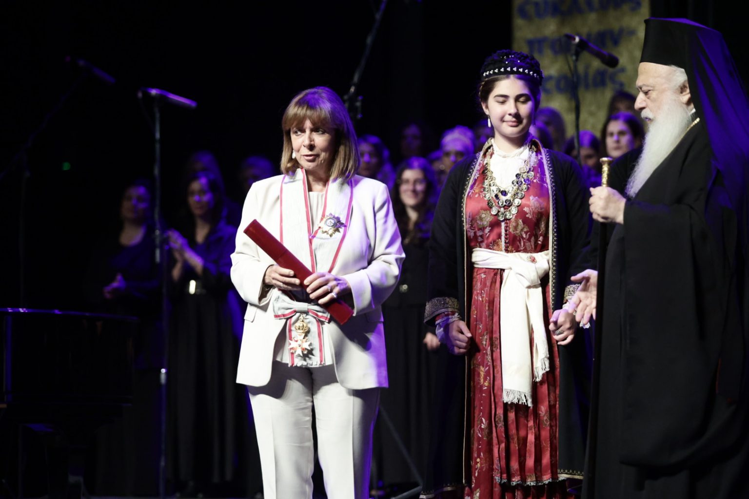 Η Πρόεδρος της Δημοκρατίας Κατερίνα Σακελλαροπούλου παρέστη στην εκδήλωση που πραγματοποιήθηκε στον χώρο τεχνών του Δήμου Βέροιας προς τιμήν του Μητροπολίτη Βεροίας, Ναούσης και Καμπανίας