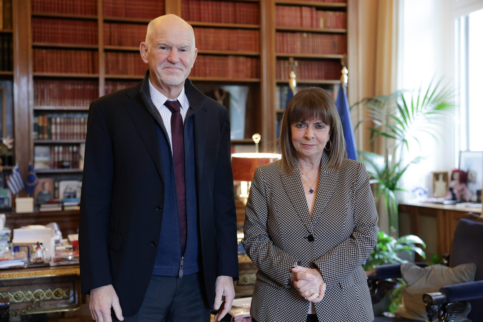 Συνάντηση με τον Γιώργο Α. Παπανδρέου 07/02/2025 Η Πρόεδρος της Δημοκρατίας Κατερίνα Σακελλαροπούλου δέχθηκε τον πρώην Πρωθυπουργό Γιώργο Α. Παπανδρέου, με αφορμή την επανεκλογή του στη θέση του Γενικού Εισηγητή για τη