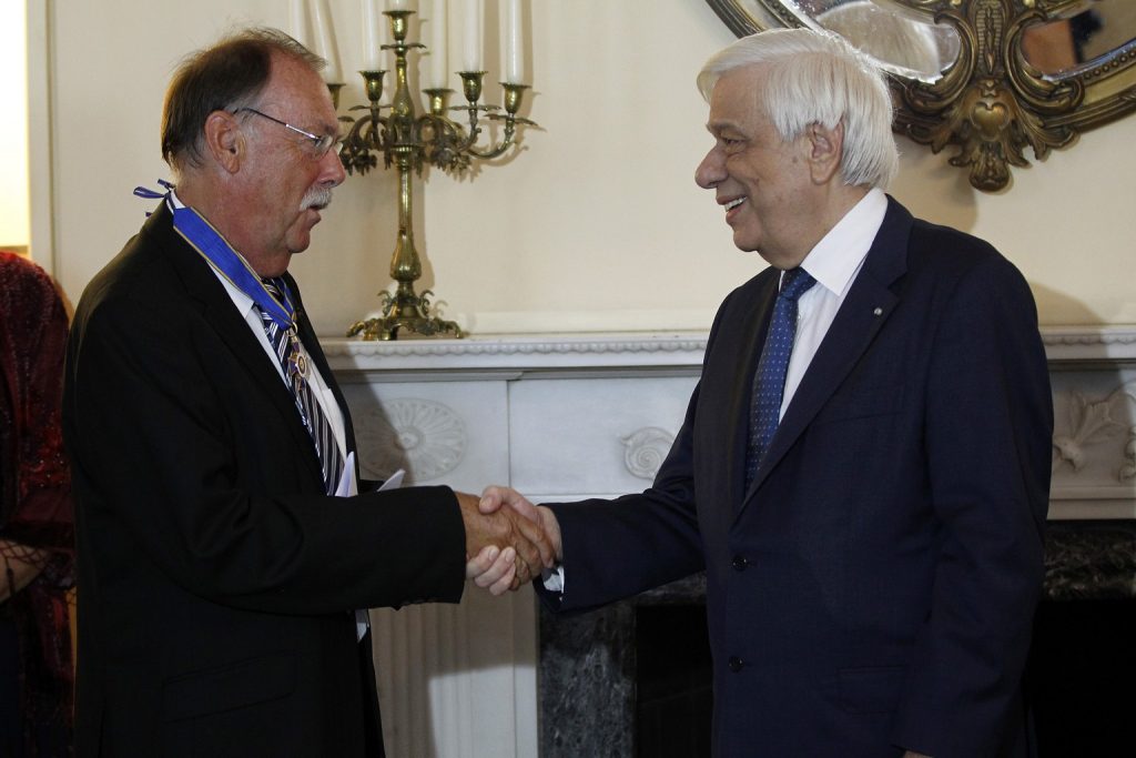ΠΡΟΕΔΡΟΣ: Κύριε Beaton, σας επιδίδω το Παράσημο του Ταξιάρχη του Τάγματος της Τιμής, για την εμβληματική συμβολή σας στην έρευνα της Νεοελληνικής και Βυζαντινής Ιστορίας, Γλώσσας και Λογοτεχνίας.