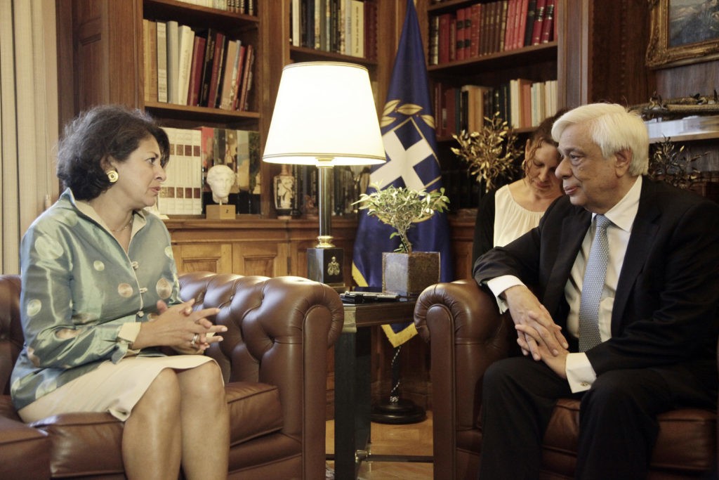 ΠΡΟΕΔΡΟΣ: Σας καλωσορίζω στην Προεδρία της Δημοκρατίας και σας συγχαίρω για το έργο της UNICEF, διεθνώς αλλά και στην Ελλάδα, ιδίως καθ’ όλη την τραγωδία της προσφυγικής κρίσης. Η Ελλάδα, όπως καλώς γνωρίζετε, παρά τις τεράστιες κοινωνικές και οικονομικές της δυσχέρειες είναι στο πλευρό της UNICEF και εκπληρώνει στο ακέραιο το χρέος της, πρωτίστως για τα παιδιά-πρόσφυγες.