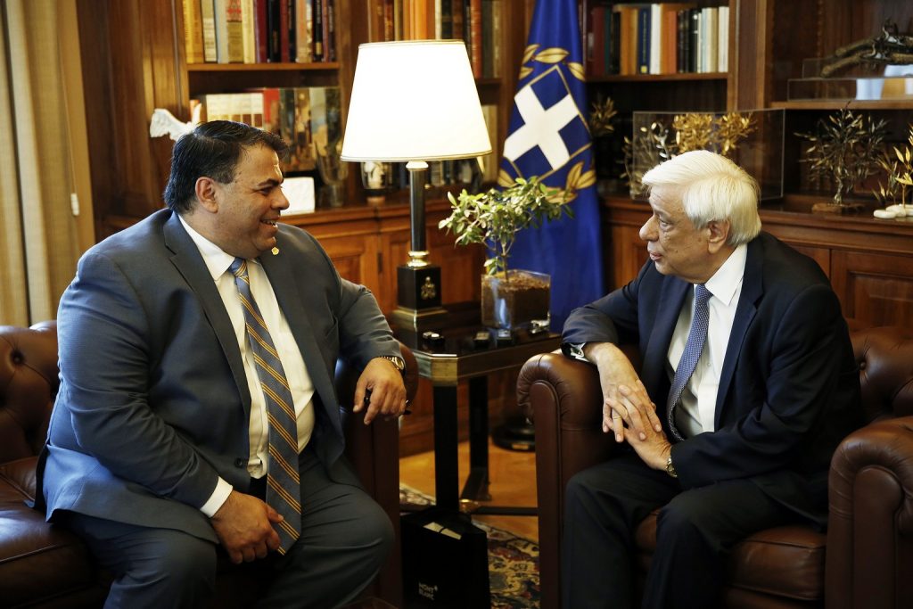Σας καλωσορίζω στην Προεδρία της Δημοκρατίας, μετά την επάξια εκλογή σας στην ηγεσία της AHEPA, και σας εύχομαι κάθε επιτυχία κατά την επιτέλεση της αποστολής σας. Καλωσορίζω, επίσης, και τα λοιπά μέλη του Δ.Σ. της AHEPA.