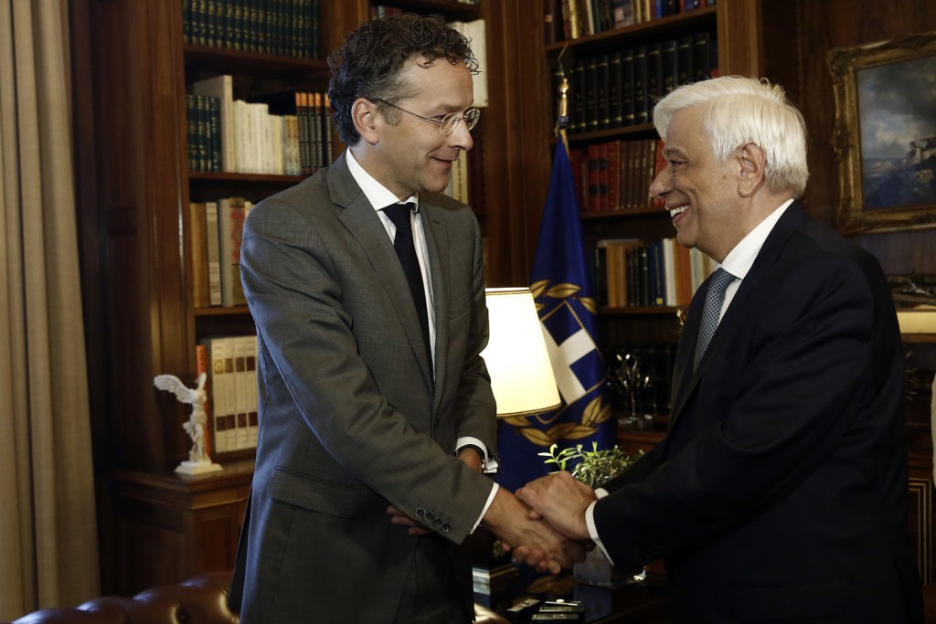 ΠΡΟΕΔΡΟΣ: Κύριε Πρόεδρε, σας καλωσορίζω στην Προεδρία της Δημοκρατίας. Θέλω να σας ευχαριστήσω θερμώς για τον τρόπο που ασκήσατε τα καθήκοντά σας ως Πρόεδρος του Eurogroup καθ’όλη αυτή την χρονική περίοδο, αλλά, ιδίως, κατά την περίοδο της ελληνικής κρίσης. Όλοι στην Ελλάδα γνωρίζουμε, παρά τις επιμέρους διακυμάνσεις που υπήρξαν, ότι ο ρόλος σας για να μην δημιουργηθούν προβλήματα στην περαιτέρω πορεία της Ελλάδας εντός της Ευρωπαϊκής Ένωσης και εντός της Ευρωζώνης υπήρξε θετικός. Και αυτή η αναγνώριση, σας το λέγω, προέρχεται από όλες τις Δημοκρατικές Πολιτικές Δυνάμεις στην Ελλάδα.