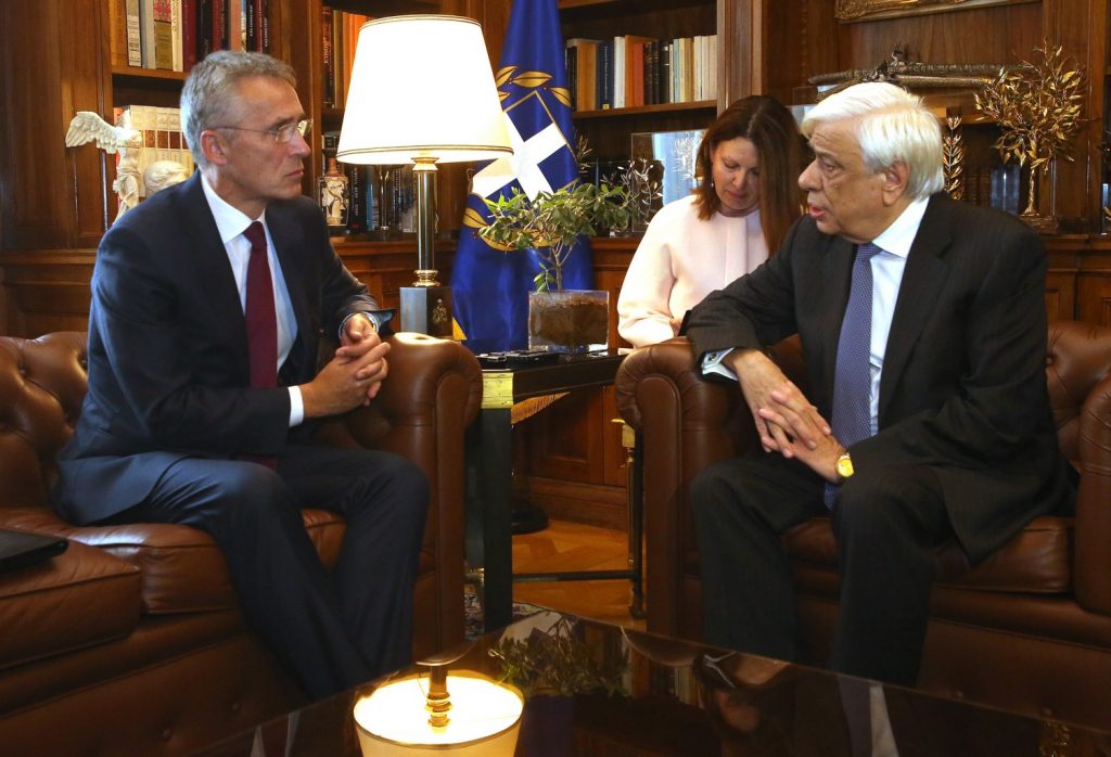 J.STOLTENBERG (από ανεπίσημη μετάφραση): Κύριε Πρόεδρε, σας ευχαριστώ πολύ που με τιμάτε. Χαίρομαι που σας συναντώ. Πράγματι, είναι αναγνωρισμένη η δέσμευση και η αφοσίωση στην Συμμαχία της Ελλάδος. Η Ελλάς είναι ένας ισχυρός σύμμαχος, τον οποίο εκτιμούμε όλοι. Πράγματι, συνεισφέρει σε θέματα συλλογικής άμυνας και ασφάλειας, μετέχει σε επιχειρήσεις, είτε αυτές είναι θαλάσσιες είτε αφορούν την καταπολέμηση της τρομοκρατίας στην ξηρά, για παράδειγμα στο Αφγανιστάν, είτε άπτονται των δυτικών Βαλκανίων με ειρηνευτικές επιχειρήσεις στο Κοσσυφοπέδιο.
