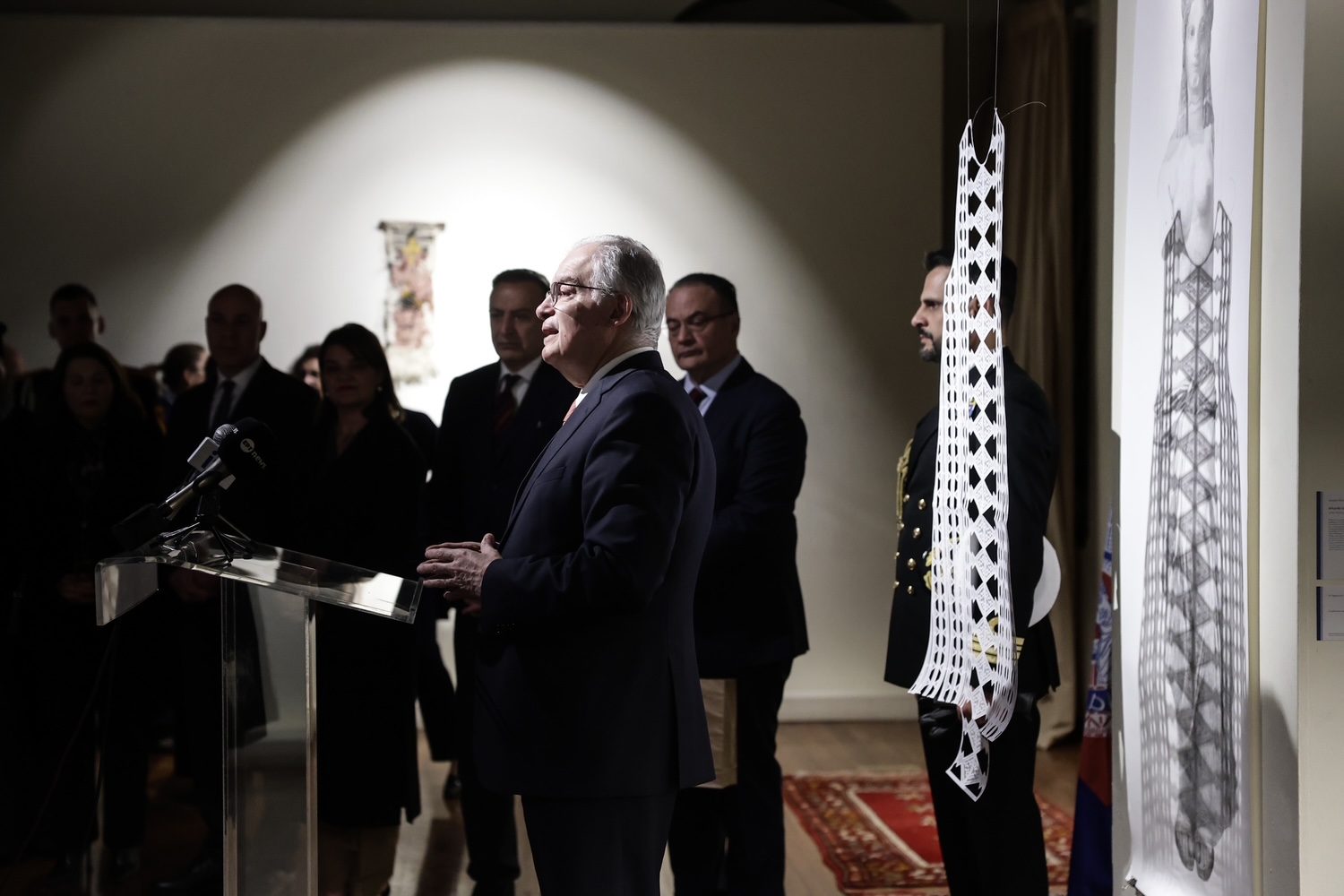 «Όταν ο κύριος Πασχόπουλος μιλούσε για την τέχνη, η οποία συνομιλεί με την υφαντική, εννοούσε το περίφημο τροπάριο της εμπνεύσεως. Η υφαντική του παρελθόντος εμπνέει τους καλλιτέχνες του παρόντος και τα έργα τους προέρχονται από αυτήν ακριβώς την έμπνευση. Αυτή η διαχρονική συνομιλία είναι αυτό το οποίο κάνει την παρούσα έκθεση, την οποίαν ήρθαμε να καμαρώσουμε, τόσο ενδιαφέρουσα.