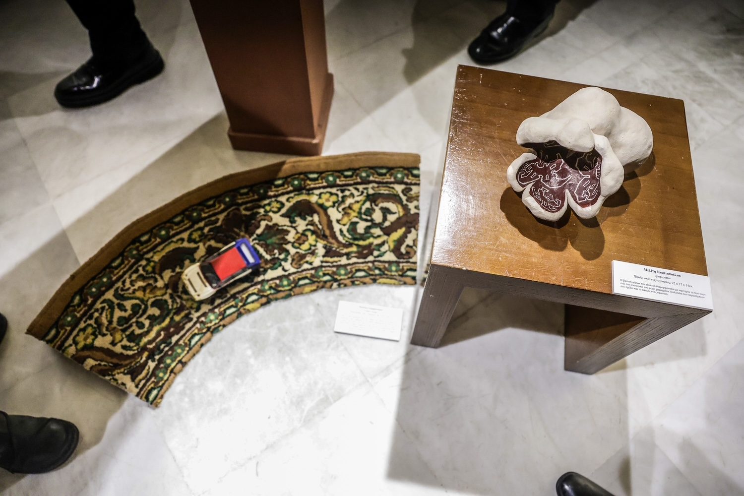 Αυτή είναι λοιπόν η τέχνη. Παίρνει σήμερα, μετά από δεκάδες χρόνια, ένα έργο κόπου, μόχθου, αγάπης και το μετατρέπει στο πώς το αντιλαμβανόμαστε σήμερα. Και αυτή η έμπνευση σήμερα είναι μπροστά μας, διαθέσιμη, ολόκληρη, απλόχερα μας παραδίδεται για να τη χαρούμε, για να υπεισέλθουμε στο νόημά της και να καταλάβουμε αυτό που ο κ. Πασχόπουλος αποκάλεσε πολύ σωστά “τη συνομιλία” της σημερινής καλλιτεχνικής αντιλήψεως με τη χθεσινή υφαντική τέχνη, με τη χθεσινή τέχνη της υφάντρας που με κόπο και μεράκι έβαλε ένα χρώμα στο σπίτι της, ένα στολίδι στο σπίτι της, όπως η ίδια το αντιλαμβανόταν.