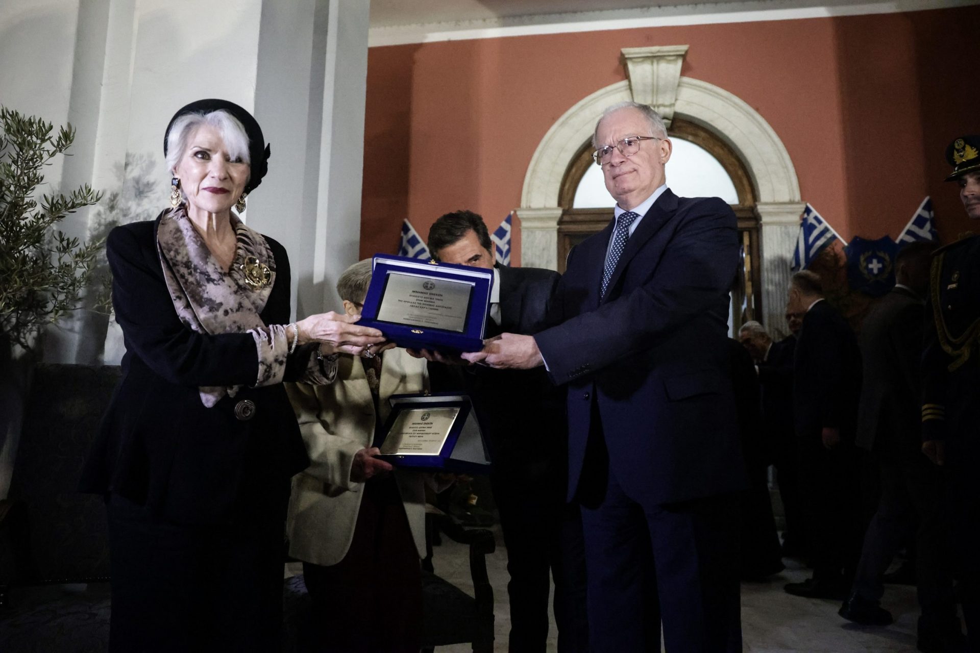 Στο πλαίσιο των εγκαινίων της έκθεσης βραβεύθηκαν η εγγονή του Παύλου Μελά, Ναταλία Ιωαννίδου και η εγγονή της Λέλας Καραγιάννη, Λέλα Β. Καραγιάννη.