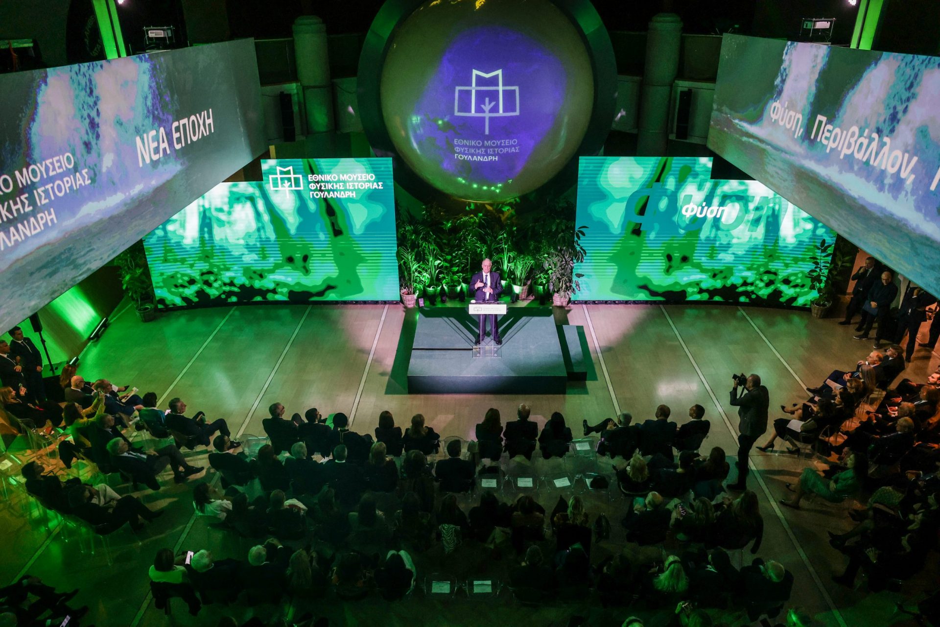 Θέλω να συγχαρώ από καρδιάς τους δεκάδες επιστήμονες που πλαισιώνουν το Μουσείο Φυσικής Ιστορίας για το πολύπλευρο έργο τους, τους επιστήμονες, επιμελητές και καλλιτέχνες, όπως και το Ίδρυμα Σταύρος Νιάρχος, που συνέβαλαν στην οργάνωση της έκθεσης «Βιοποικιλότητα, όλα συνδέονται» την οποία εγκαινιάζουμε σήμερα και ιδιαίτερα την Πρόεδρο του Μουσείου, κυρία Φαλή Βογιατζάκη, που επί δεκαετίες υπηρετεί το όραμά του μεταφράζοντας με έμπνευση, συνέπεια και πίστη τη γλώσσα της οικολογίας σε πολιτισμική εμπειρία.