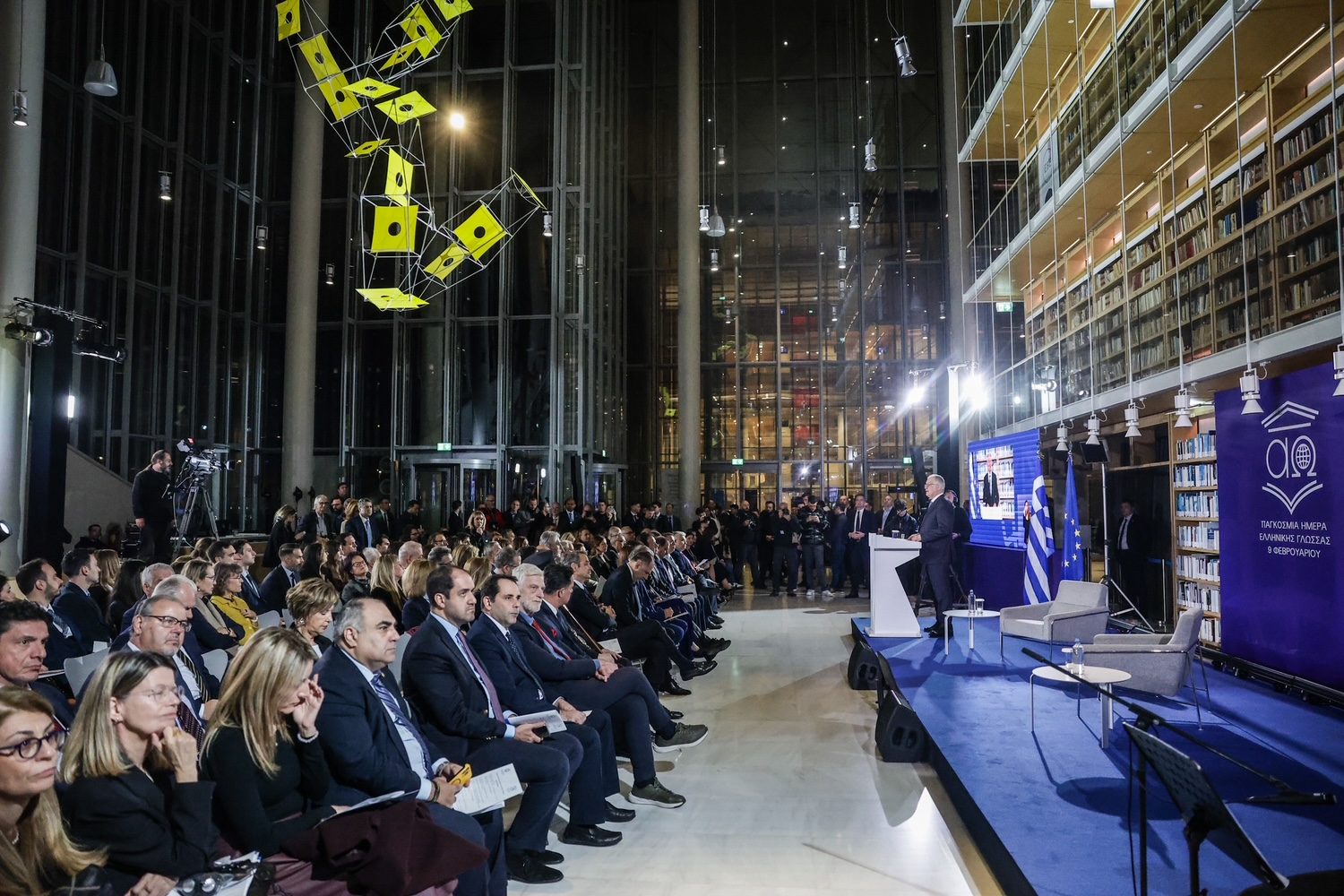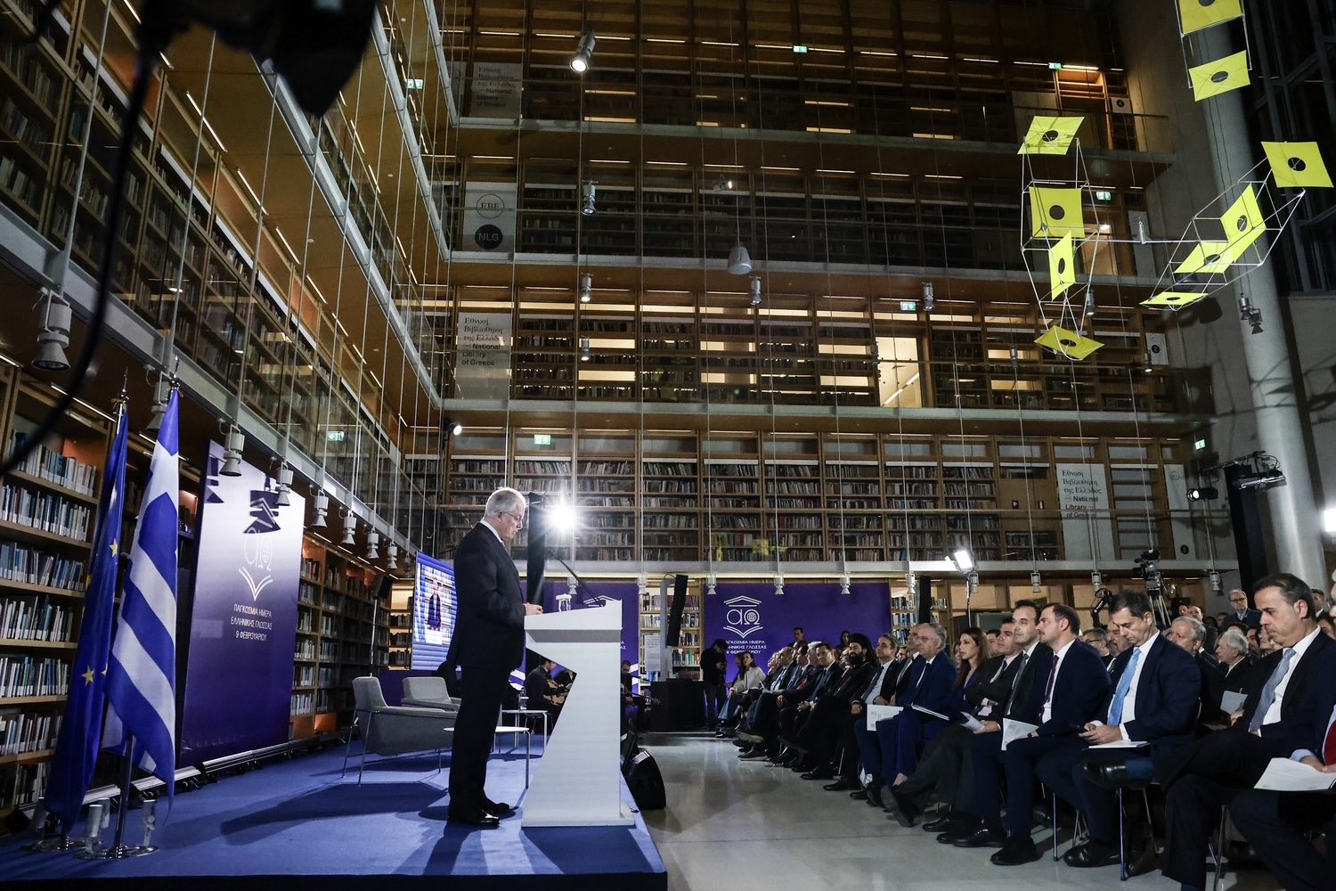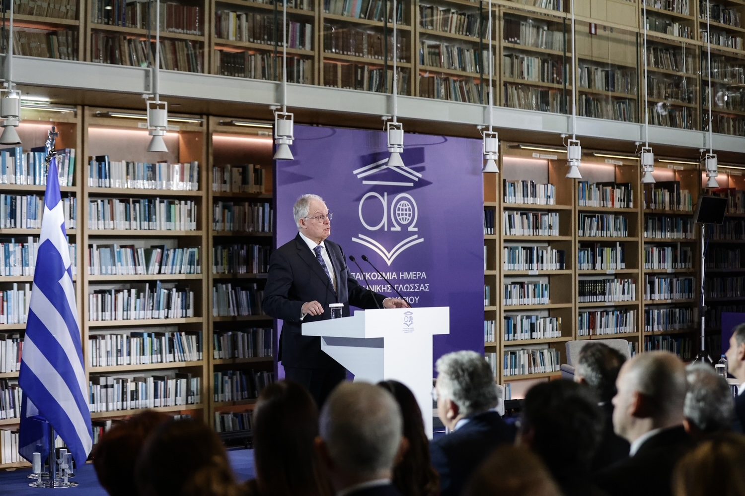 Ο Πρόεδρος της Δημοκρατίας Κωνσταντίνος Αν. Τασούλας παρέστη στην εκδήλωση του Υπουργείου Εξωτερικών για τον εορτασμό της Παγκόσμιας Ημέρας Ελληνικής Γλώσσας στην Εθνική Βιβλιοθήκη της Ελλάδος, στο Κέντρο Πολιτισμού Ίδρυμα Σταύρος Νιάρχος.