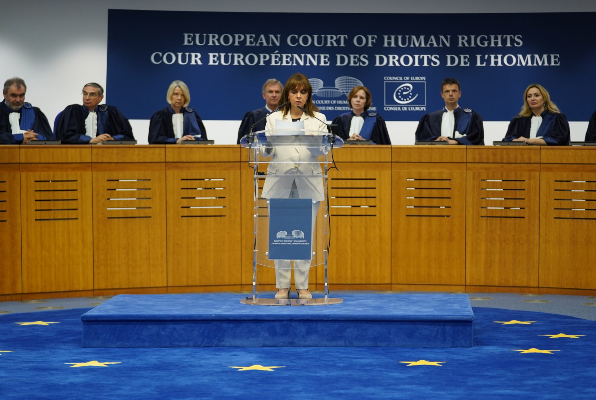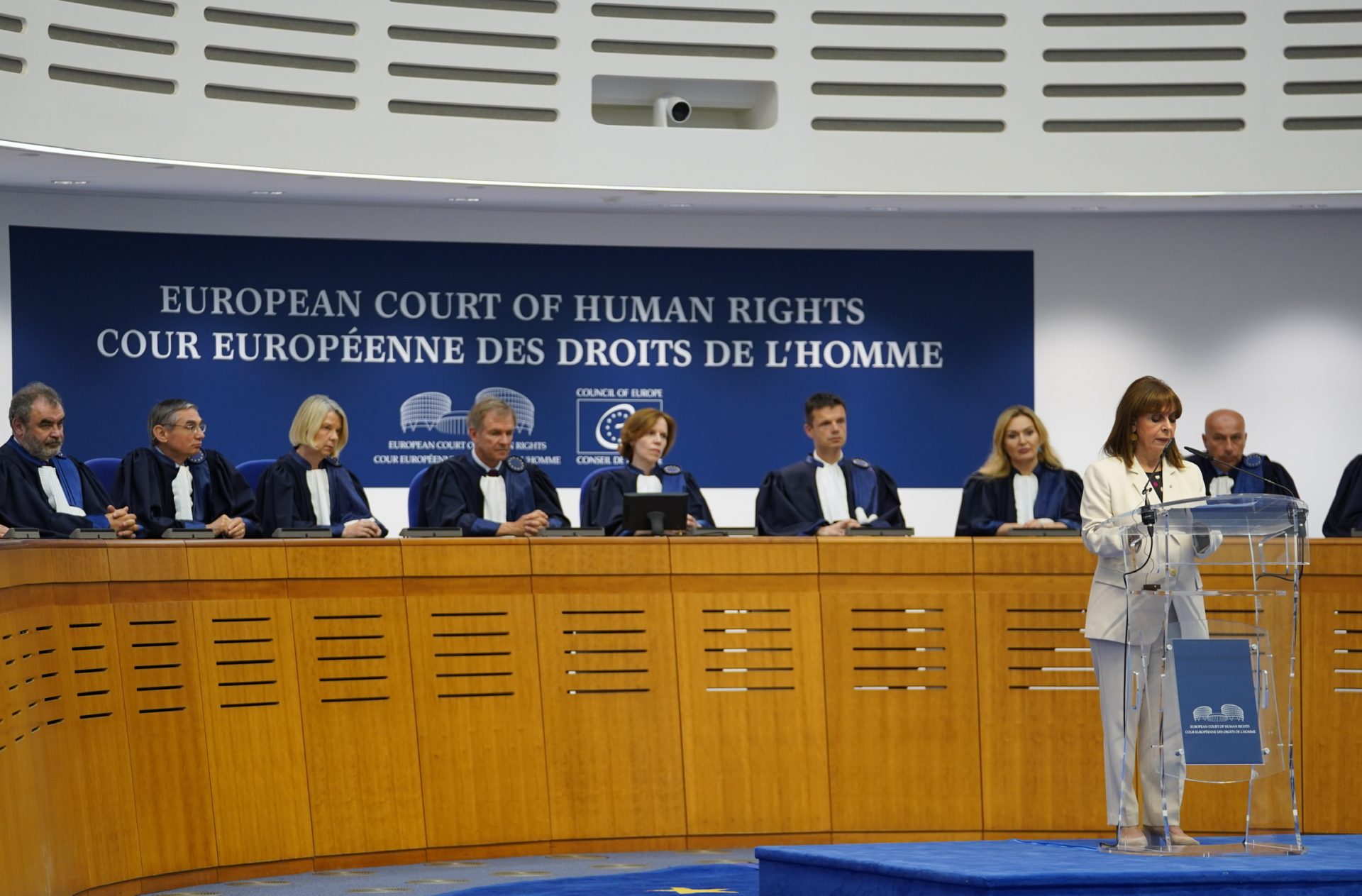 Στη συνέχεια, η κυρία Σακελλαροπούλου απηύθυνε χαιρετισμό στην επίσημη τελετή έναρξης του δικαστικού έτους του Ευρωπαϊκού Δικαστηρίου Ανθρωπίνων Δικαιωμάτων.