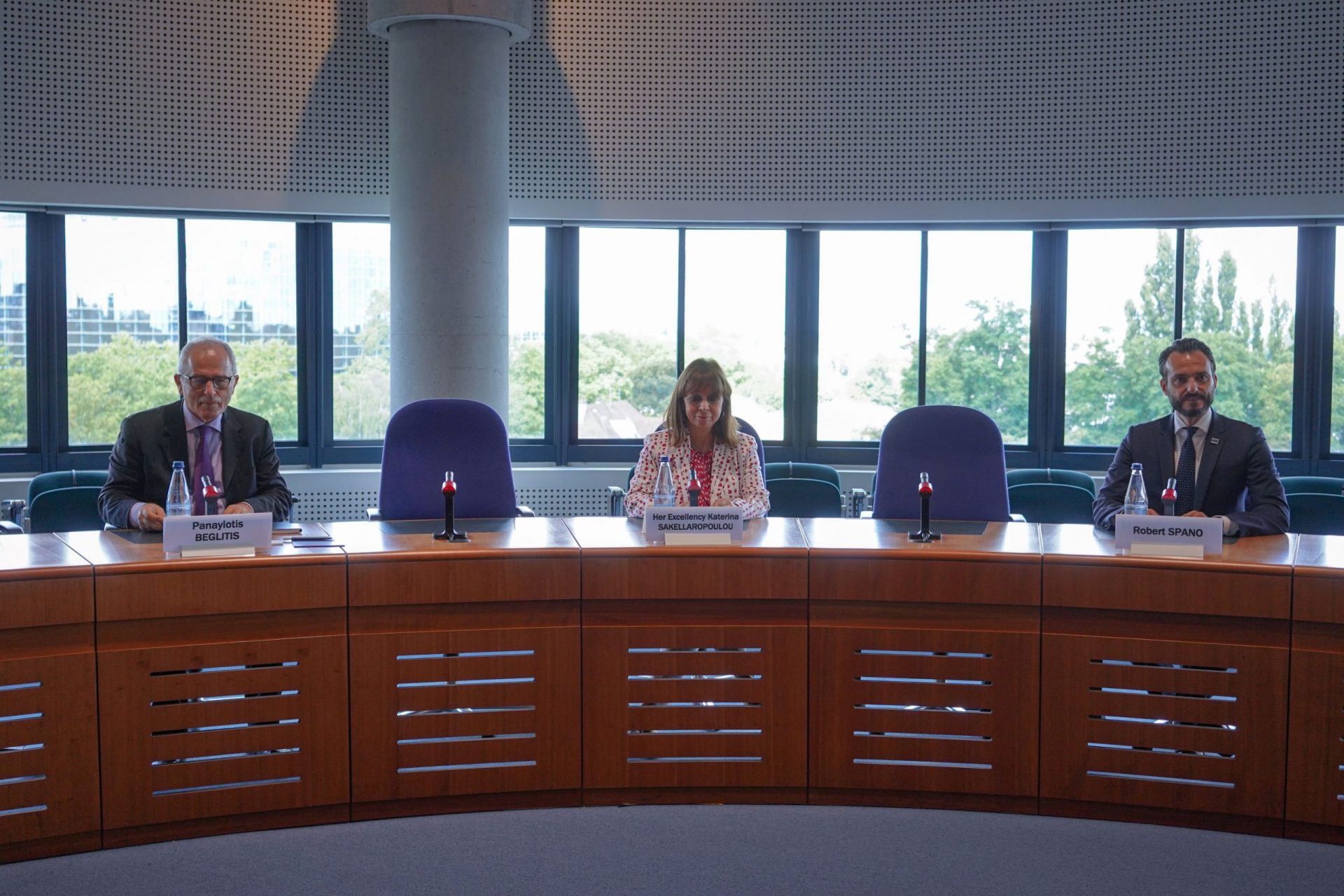 Η Πρόεδρος της Δημοκρατίας Κατερίνα Σακελλαροπούλου επισκέφθηκε το Ευρωπαϊκό Δικαστήριο Ανθρωπίνων Δικαιωμάτων και συναντήθηκε με τον Πρόεδρό του Robert Spano, την Γενική Γραμματέα Μαριαλένα Τσίρλη και τον δικαστή Ιωάννη Κτιστάκι.