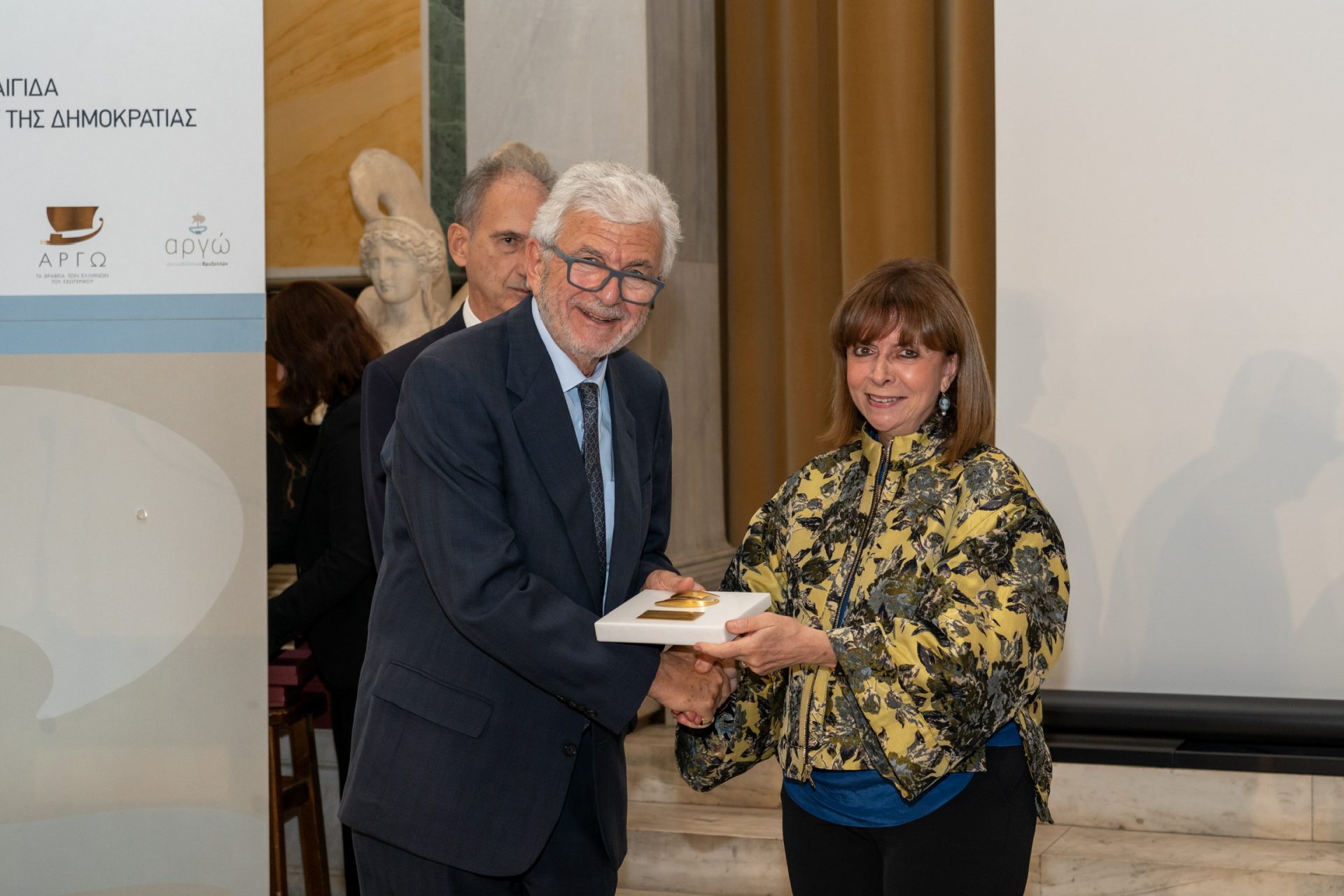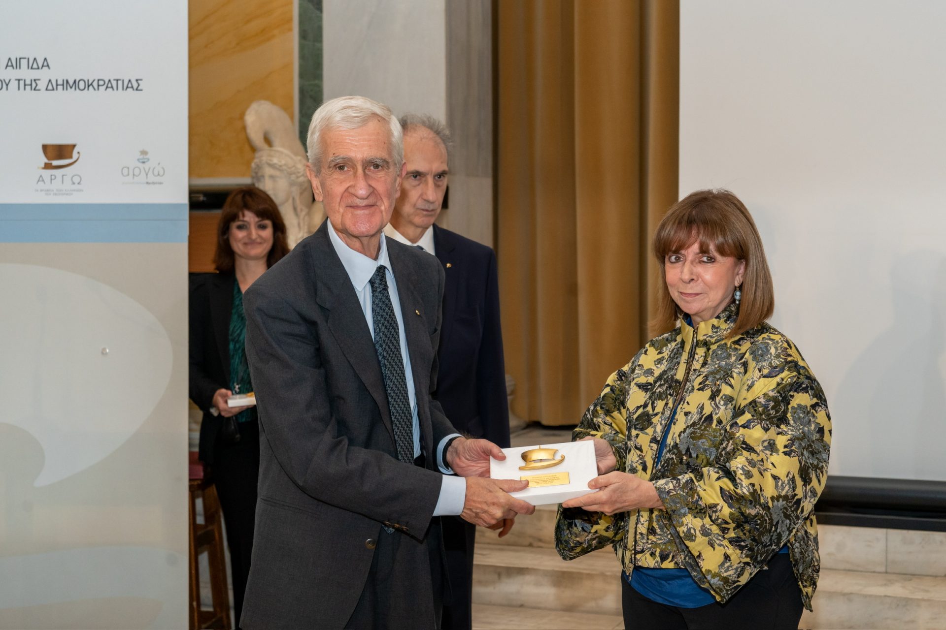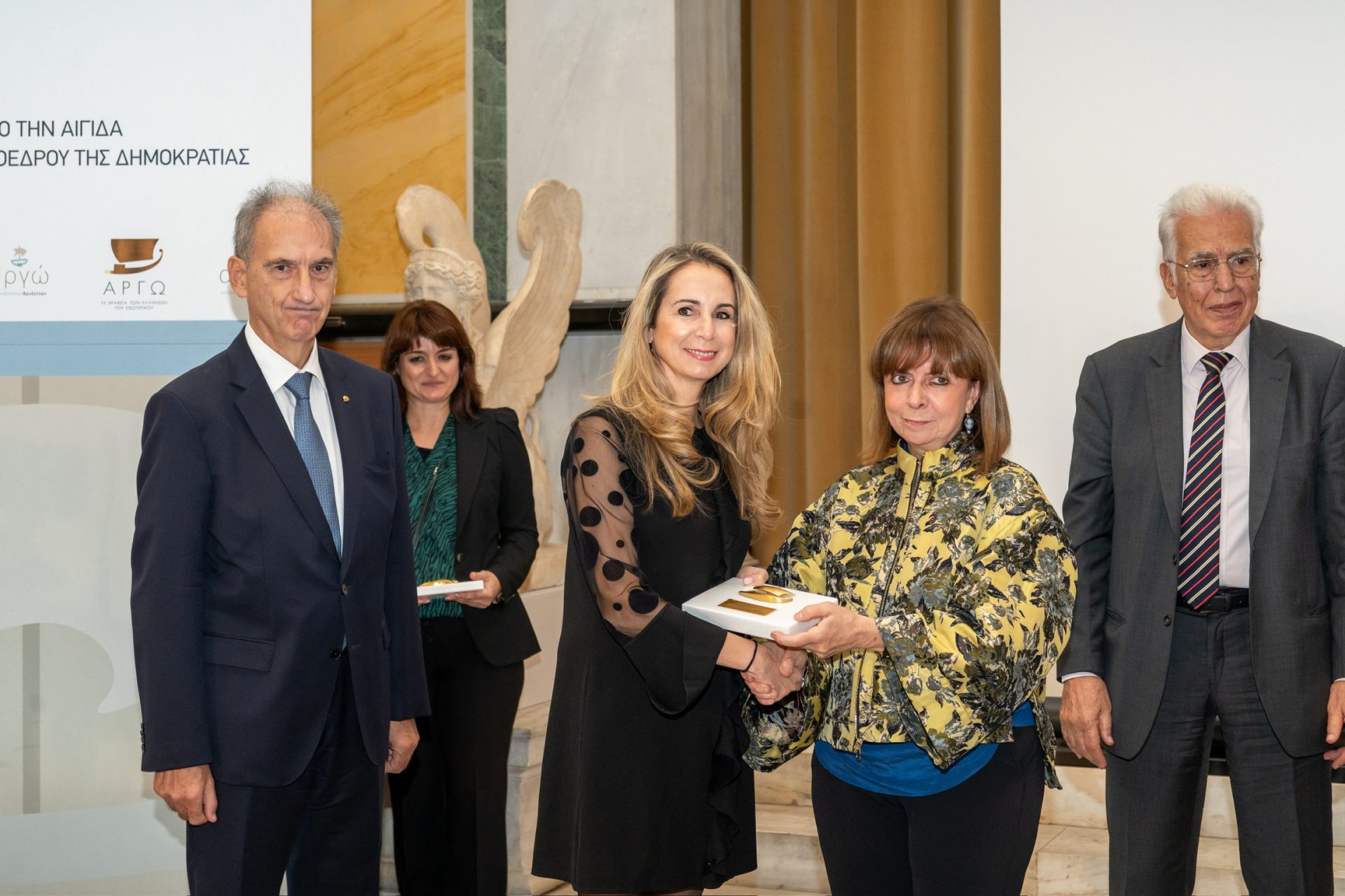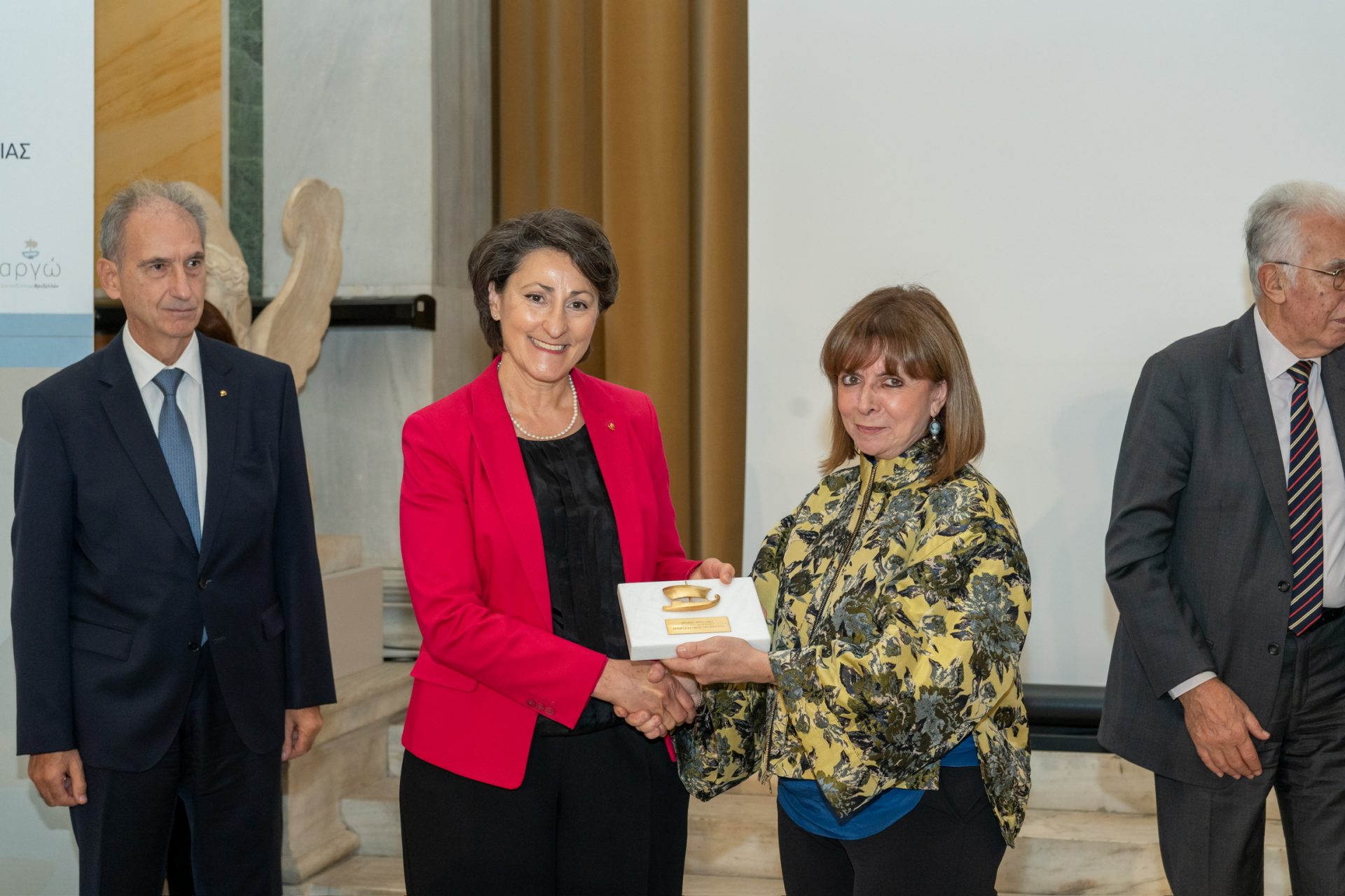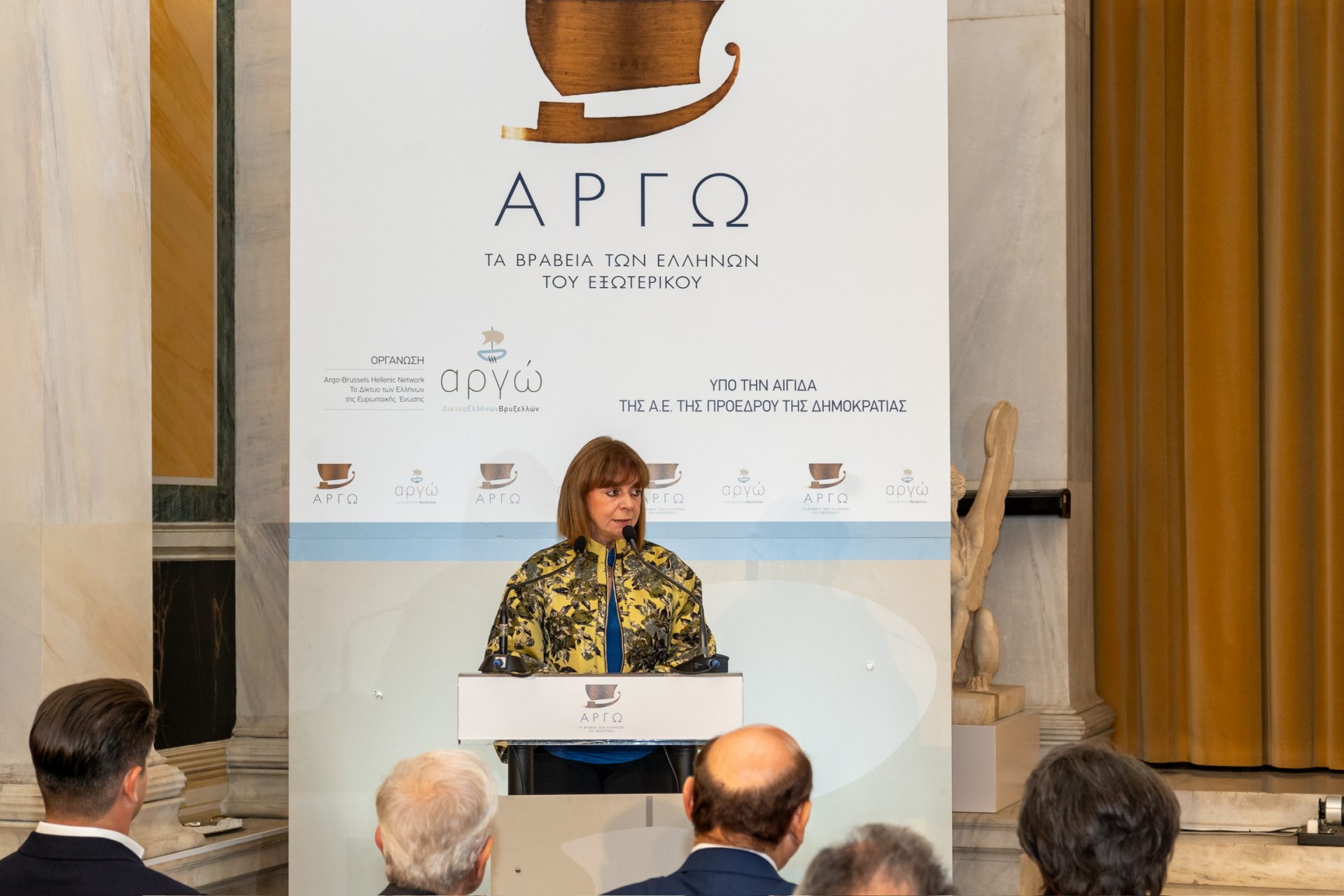 Η Πρόεδρος της Δημοκρατίας Κατερίνα Σακελλαροπούλου επέδωσε τα βραβεία ΑΡΓΩ, σε τελετή που διοργάνωσε η Διεθνής Ένωση «ΑΡΓΩ – ΔΙΚΤΥΟ ΕΛΛΗΝΩΝ ΒΡΥΞΕΛΛΩΝ» στην Ακαδημία Αθηνών.