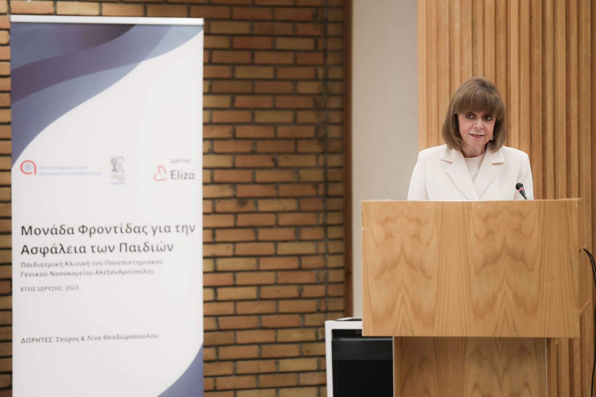 Η Πρόεδρος της Δημοκρατίας Κατερίνα Σακελλαροπούλου απηύθυνε χαιρετισμό στην τελετή εγκαινίων της Μονάδας Φροντίδας για την Ασφάλεια των Παιδιών «ΕΛΙΖΑ», η οποία πραγματοποιήθηκε στο Πανεπιστημιακό Γενικό Νοσοκομείο Αλεξανδρούπολης.