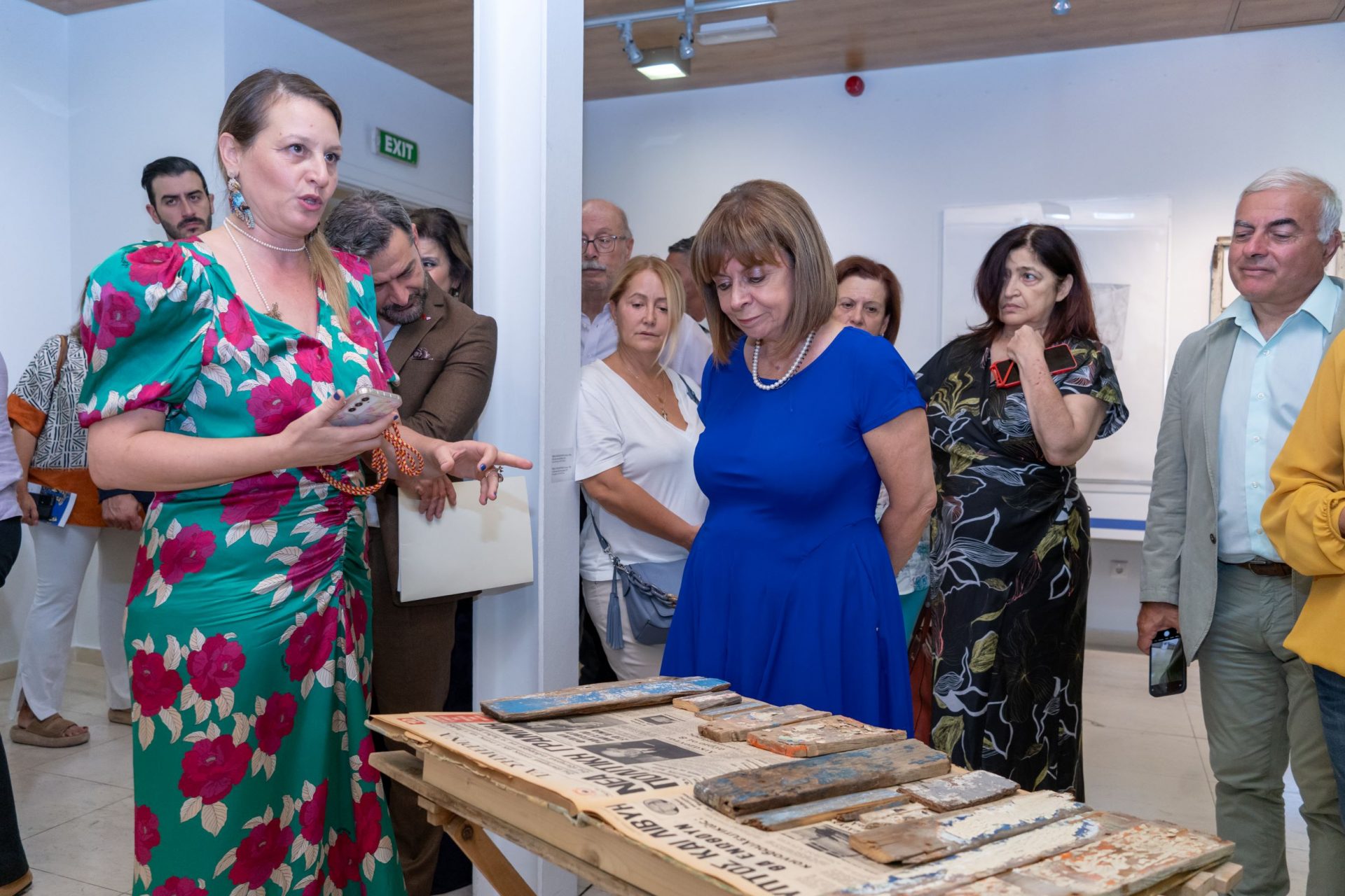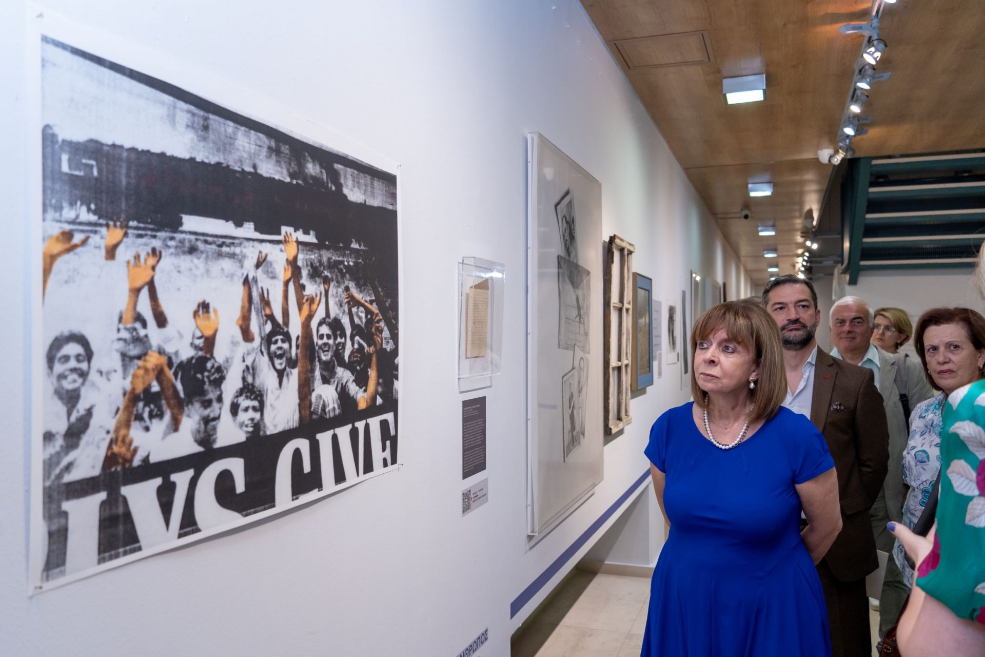 Χαίρομαι επίσης γιατί σ’ αυτήν την υποβλητική συμπαράθεση έργων παλαιότερων και νέων καλλιτεχνών αναπτύσσεται ένας γόνιμος διάλογος, βασικό συστατικό της δημοκρατίας, στον οποίο συμπλέκονται εμπειρίες και καταστάσεις του παρελθόντος με ερωτήματα και προβληματισμούς του παρόντος. Συγχαίρω θερμά όσους εργάστηκαν για την υλοποίηση της έκθεσης, παρουσιάζοντας στο κοινό δημιουργίες που δεν έχουν μόνο καλλιτεχνική αλλά και ιστορική σημασία και εύχομαι καλή επιτυχία.