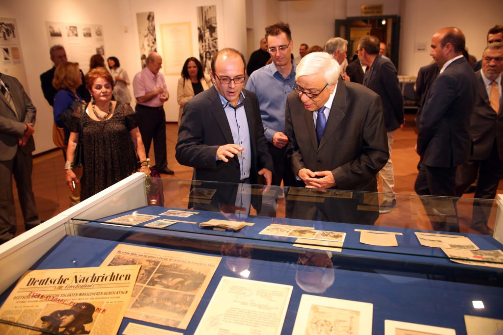 Θεσσαλονίκη : Αντίστοιχη υπήρξε η πορεία της, και στην αντίσταση και στην απελευθέρωση. Δεν είναι τυχαίο ότι το «ΟΧΙ» και η επέτειός του γιορτάζονται στη Θεσσαλονίκη. Η Θεσσαλονίκη είχε τις αντίστοιχες περγαμηνές αντίστασης με τους δικούς της ανθρώπους, τα δικά της μαρτύρια. Θέλω όμως να τονίσω δυο σημεία για τη μοναδικότητα της Θεσσαλονίκης σ΄ αυτή την περίοδο. Σε αυτή την περίοδο εκτός από την Ελευθερία της Ελλάδας, η Θεσσαλονίκη υπερασπίσθηκε την Ελληνικότητα της Μακεδονίας μας. Γιατί ήτανε μια ταραγμένη περίοδος όπου και η Ελληνικότητά της κινδύνευσε, όπως και σήμερα αμφισβητείται. Και αυτό πρέπει να το αντιληφθούμε ως εθνικό μας χρέος. Να ακολουθήσουμε εκείνο το παράδειγμα, όταν η Θεσσαλονίκη υπερασπίσθηκε την Ελληνικότητα της Μακεδονίας απέναντι σε πολλούς οι οποίοι την επιβουλεύτηκαν κρυπτόμενοι πίσω από τη ναζιστική μάσκα και μπότα. Αλλά η Θεσσαλονίκη έχει και μία άλλη όχι μόνο εθνική αλλά παγκόσμια περγαμηνή, σε ό,τι αφορά την συμβολή της, σε αυτό που θα λέγαμε τον οβολό της, στο Β΄ Παγκόσμιο Πόλεμο. Είναι η Πόλη εκείνη που πλήρωσε βαρύ το τίμημα των ομοεθνών μας Εβραίων στο πιο στυγερό έγκλημα κατά της Ανθρωπότητας, στο Ολοκαύτωμα. Και αυτό είναι κάτι, το οποίο η Θεσσαλονίκη το έχει ως έμβλημα σε παγκόσμια κλίμακα όπως είναι γνωστό. Με την ίδια δύναμη ψυχής γνώρισε και εκείνη την Απελευθέρωση και, επομένως, είναι σωστό να μιλάμε για κοινές πορείες αυτών των δύο μεγάλων εθνικών φάρων του Ελληνισμού, της Αθήνας και της Θεσσαλονίκης. Η Έκθεση αυτή είναι πολύτιμη. Όχι μόνο γι΄ αυτά που μας θυμίζει, αλλά και γι αυτά τα οποία πρέπει να μας διδάξει σήμερα. Και αυτά είναι πολλά. Επιτρέψτε μου, μόνο δύο να τονίσω.