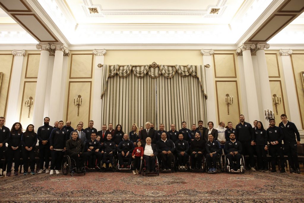 ΠΡΟΕΔΡΟΣ: Με ιδιαίτερη χαρά αλλά και τιμή σας υποδέχομαι, και πάλι, στην Προεδρία της Δημοκρατίας. Και τα αισθήματα αυτά δικαιολογούνται από το ότι και φέτος, το 2019, θα έλεγα δε ακόμη περισσότερο φέτος, πετύχατε κορυφαίες νίκες, οι οποίες σας φέρνουν και πάλι – αυτό γίνεται εδώ και πολλά χρόνια αλλά συνεχίζεται και αυτό είναι το σημαντικό – στις κορυφαίες βαθμίδες του παγκόσμιου στερεώματος των Παραολυμπιακών Αγώνων.