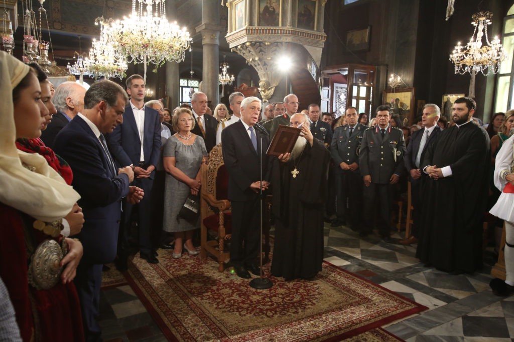 Όμως εμείς, ο Ελληνισμός, οφείλουμε πάντα να θυμόμαστε και νάμαστε δίκαιοι απέναντι στην Ιστορία. Και η Ιστορία διδάσκει ότι σε δύσκολους χρόνους τούτο το Κράτος είχε την συμπαράσταση της Εκκλησίας. Και σήμερα ακόμα, σ’αυτούς τους δύσκολους καιρούς, μιας Κοινωνίας που χειμάζεται, ενός Λαού που δοκιμάζεται, η συμβολή της Εκκλησίας είναι καθοριστική. Η Εκκλησία και η Οικογένεια έχουν αποτρέψει, όπως επανειλημμένα έχω πει, την ρήξη του κοινωνικού μας ιστού. Αυτά οφείλουμε να τ’αναγνωρίζουμε για να είμαστε δίκαιοι με την Ιστορία. Και το τονίζω εκ νέου: Δεν σημαίνει σε καμία περίπτωση ότι δεν αναγνωρίζουμε τις υποχρεώσεις που έχει η Δημοκρατία μας για να τηρεί όλα τα θεμελιώδη δικαιώματα του Ανθρώπου. Για τούτο, Μακαριώτατε, η Πολιτεία είναι σήμερα παρούσα για να συμβολίσει, μέσω του προσώπου Σας, το ότι αναγνωρίζει εκείνο το οποίο ανήκει στην Εκκλησία, στην Ιστορία της και, βεβαίως, στην προοπτική της. Έτη πολλά Μακαριώτατε.-