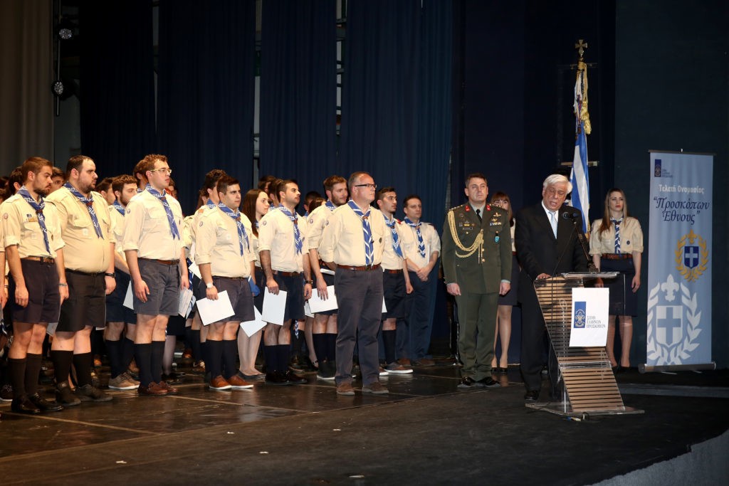 Πρόσκοποι Έθνους, συγχαρητήρια για την καταξίωσή σας. Αυτή όμως η καταξίωση δεν είναι κατάληξη. Είναι νέα αρχή. Αρχή μιας άλλης αποστολής. Και την αποστολή αυτή την καθορίζει το διπλό έμβλημα, το οποίο συνοδεύει τον Θυρεό σας. Το πρώτο, όπως σας το κληροδότησε το 1915 ο Ελευθέριος Βενιζέλος: «Αιέν αριστεύειν και υπείροχον έμμεναι άλλων», κατά τον στίχο του Ομήρου στην Ιλιάδα. Και το δεύτερο: «Έσο έτοιμος». Και τα δύο αυτά εμβληματικά διδάγματα, δείχνουν ακριβώς τι σημαίνει Προσκοπισμός, Προσκοπικό Κίνημα, όχι μόνο στην Ελλάδα, αλλά παγκοσμίως: ΄Ενα κίνημα εθελοντισμού, ένα κίνημα προσφοράς. Εσείς είστε πια Πρόσκοποι Έθνους. Του Ελληνικού Έθνους. Η αποστολή σας, από αυτή τη στιγμή, αφορά και την κοινωνία μας, αφορά και τη θέση της Ελλάδας στον κόσμο. Πριν απ΄ όλα την κοινωνία μας, που χειμάζεται μέσα στη δίνη μιας βαθιάς κοινωνικής και οικονομικής κρίσης. Βοηθείστε το συνάνθρωπο, όπως το μάθατε να βοηθάτε. Γιατί χάρη σε σας, χάρη στην Οικογένεια, χάρη στην Εκκλησία, δεν έχει εκραγεί ευτυχώς -και δεν πρόκειται να εκραγεί- η ελληνική κοινωνία. Ούτε θα υπάρξει ρήξη του κοινωνικού ιστού. Υπάρχει όμως και μια άλλη ουσιώδης αποστολή. Ζούμε, εδώ ιδίως στην Ελλάδα, την προσφυγική τραγωδία. Την βιώνουμε και την αντιμετωπίζουμε εμείς οι Έλληνες, όπως ταιριάζει στους Έλληνες. Όπως μας έμαθε το Αρχαίο Ελληνικό Πνεύμα. Όπως μας το έμαθε η Χριστιανική Διδασκαλία: Στο κέντρο είναι πάντα ο Άνθρωπος. Είναι οι τρεις αρχές ο Ανθρωπισμός, η Δικαιοσύνη, η Δημοκρατία. Έτσι συμπεριφερόμαστε και έτσι διδάσκουμε ως Έλληνες με το παράδειγμά μας. Πρόσκοποι Έθνους, δυστυχώς σε αυτή την προσπάθεια, ζώντας σε μια μεγάλη οικογένεια, όπως είναι η Ευρωπαϊκή Οικογένεια, βάσεις της οποίας είναι το Πνεύμα της Αρχαίας Ελλάδας, οι Θεσμοί τής Αρχαίας Ρώμης και η Χριστιανική Διδασκαλία, θα περίμενε κανείς όλοι οι λαοί να σταθούν αλληλέγγυοι απέναντι στον άνθρωπο και στην τραγωδία του. Υπάρχουν όμως κάποιοι -ευτυχώς λίγοι- από τους εταίρους μας που δεν έχουν πάρει το δίδαγμα αυτό. Διακατέχονται από φοβικά σύνδρομα, δείχνουν απομονωτισμό και ένα αντιδημοκρατικό πνεύμα. Υπάρχουν επίσης και άλλοι, εκτός Ευρωπαϊκής Ένωσης, γείτονές μας, οι οποίοι μάλιστα φιλοδοξούν να μπουν στην Ευρωπαϊκή Ένωση, κι όμως τούτη τη δύσκολη ώρα, απέναντι στους πρόσφυγες συμπεριφέρονται με συρματοπλέγματα παραπετάσματος και με όρους βαρβαρότητας.