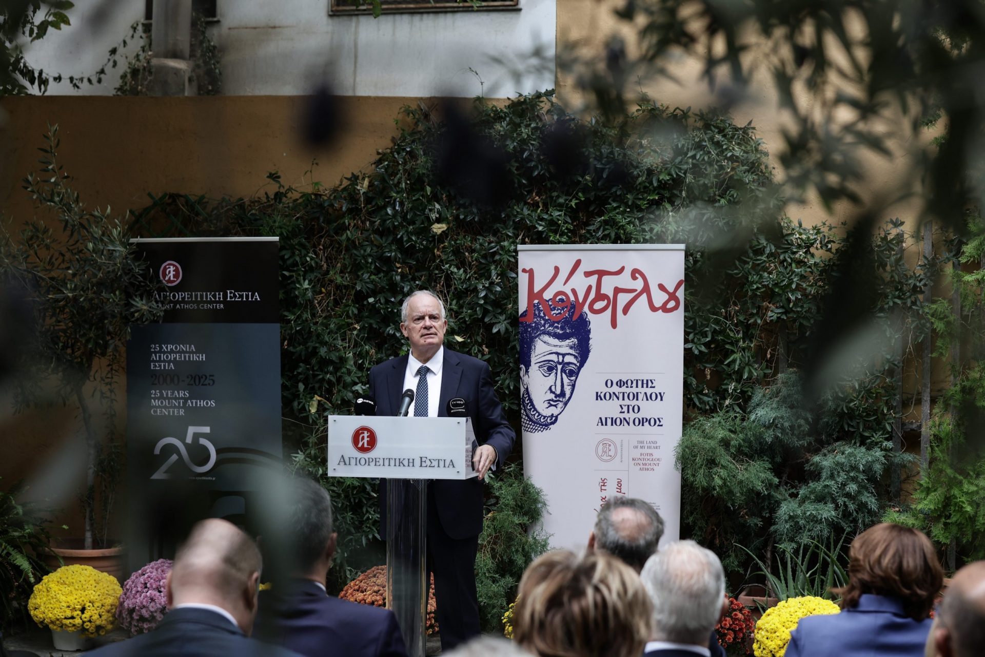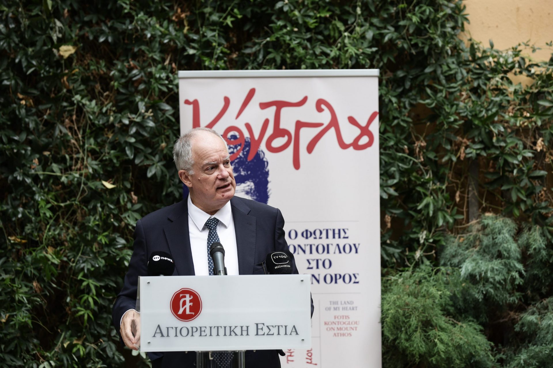 Μέσα από την τέχνη και τη γραφή του, ο Φώτης Κόντογλου ανέδειξε το Άγιο Όρος ως σύμβολο ελληνικότητας, πνευματικής καθαρότητας και αισθητικής αλήθειας. Η έκθεση που με μεγάλη χαρά και συγκίνηση εγκαινιάζουμε σήμερα αναδεικνύει πόσο δημιουργικά εγκολπώθηκε ο καλλιτέχνης την πνευματική δύναμη και την αισθητική λιτότητα της βυζαντινής τέχνης και πώς τις «διερμήνευσε» ώστε να μεταγγίσει αυτές τις πολύτιμες αξίες στον σύγχρονο κόσμο. Θερμά συγχαρητήρια στην Αγιορειτική Εστία και σε όσους εργάστηκαν για να πραγματοποιηθεί η εξαιρετικά ενδιαφέρουσα αυτή έκθεση».