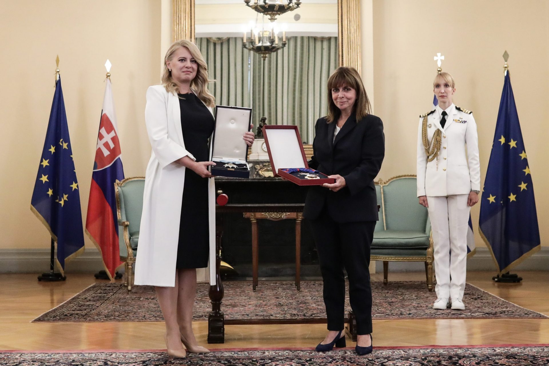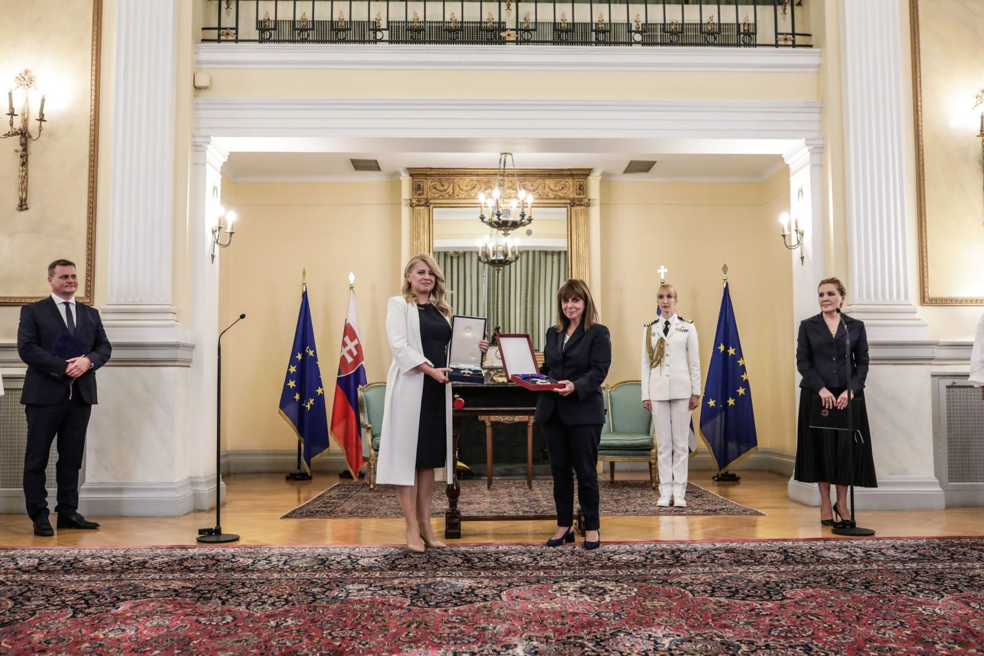 Με τη σειρά της, η Πρόεδρος της Δημοκρατίας της Σλοβακίας Zuzana Čaputová απένειμε στην κυρία Σακελλαροπούλου το Παράσημο του Μεγαλόσταυρου του Τάγματος του Λευκού Διπλού Σταυρού.