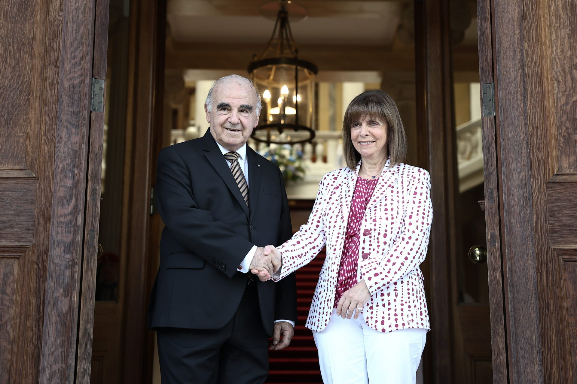 ΚΑΤΕΡΙΝΑ ΣΑΚΕΛΛΑΡΟΠΟΥΛΟΥ: Αγαπητέ κύριε Πρόεδρε, φίλε George, με ιδιαίτερη χαρά σας συναντώ ξανά και σας καλωσορίζω στην Αθήνα και στο Προεδρικό Μέγαρο.