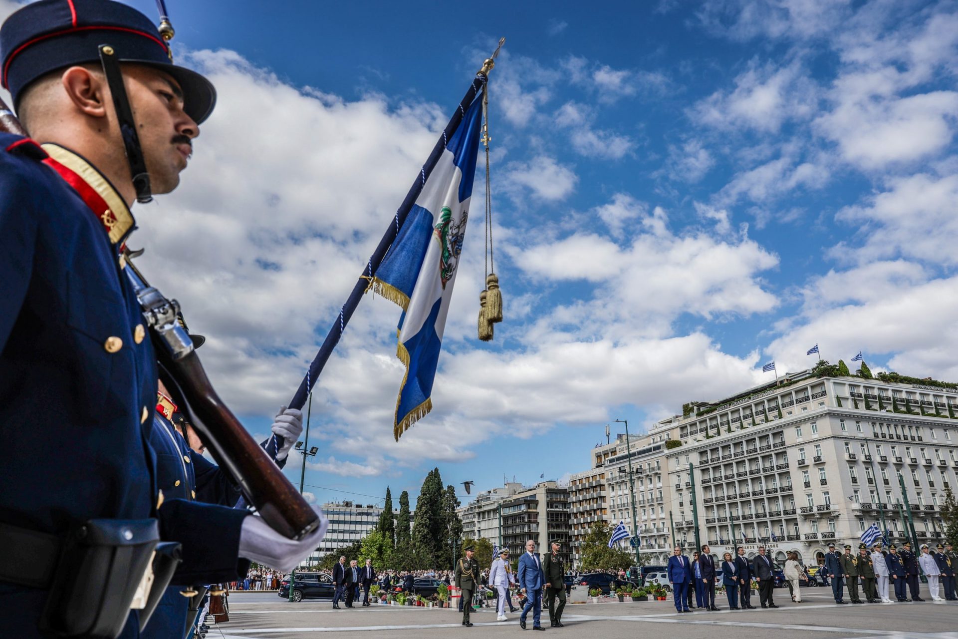 Ο Πρόεδρος της Δημοκρατίας Κωνσταντίνος Αν. Τασούλας παρέστη σήμερα στην έπαρση της σημαίας στον Ιερό Βράχο της Ακρόπολης και στη συνέχεια κατέθεσε στεφάνι στο Μνημείο του Αγνώστου Στρατιώτη, στο πλαίσιο του εορτασμού της 81ης επετείου της απελευθέρωσης των Αθηνών από τα στρατεύματα κατοχής.