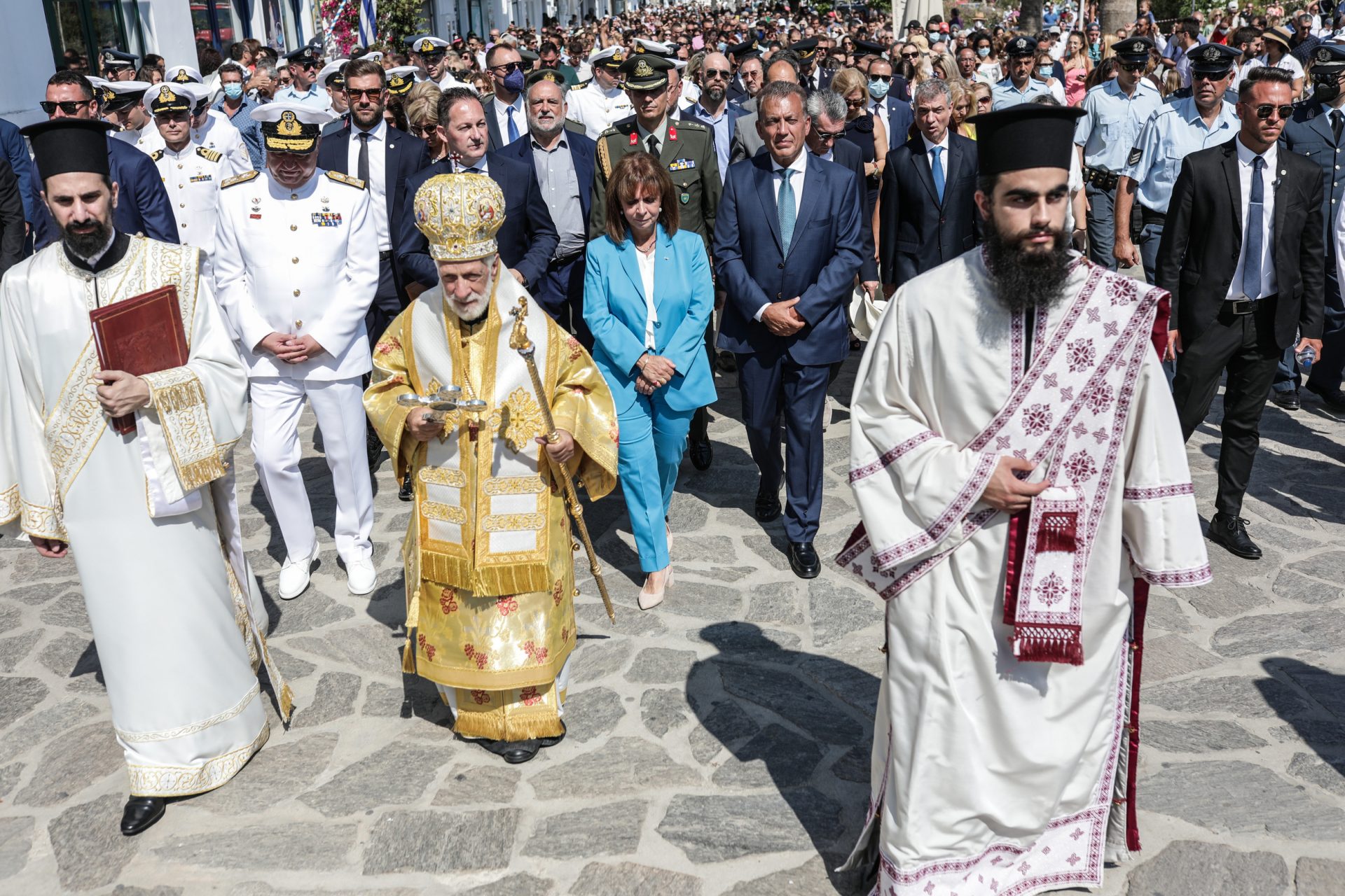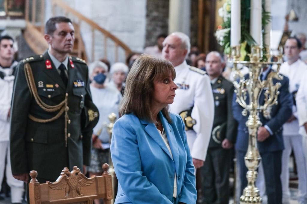 Η Πρόεδρος της Δημοκρατίας Κατερίνα Σακελλαροπούλου παρέστη στη δοξολογία στο Ιερό Προσκύνημα Παναγίας Εκατονταπυλιανής Πάρου.