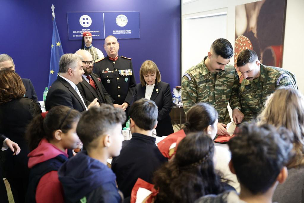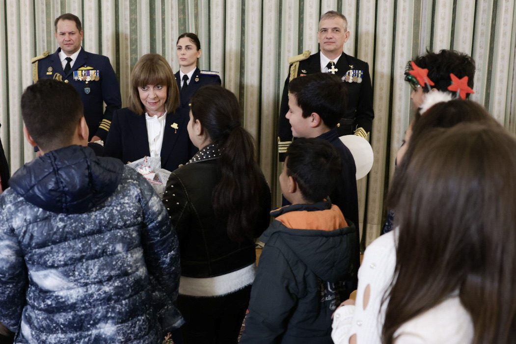 Παρόντα ήταν και παιδιά από τα παιδικά χωριά SOS Ελλάδος, τα οποία, αφού αντάλλαξαν με την Πρόεδρο ευχές και δώρα, την ακολούθησαν στην Προεδρική Φρουρά, όπου τους υποδέχθηκε ο Διοικητής του Στρατοπέδου.