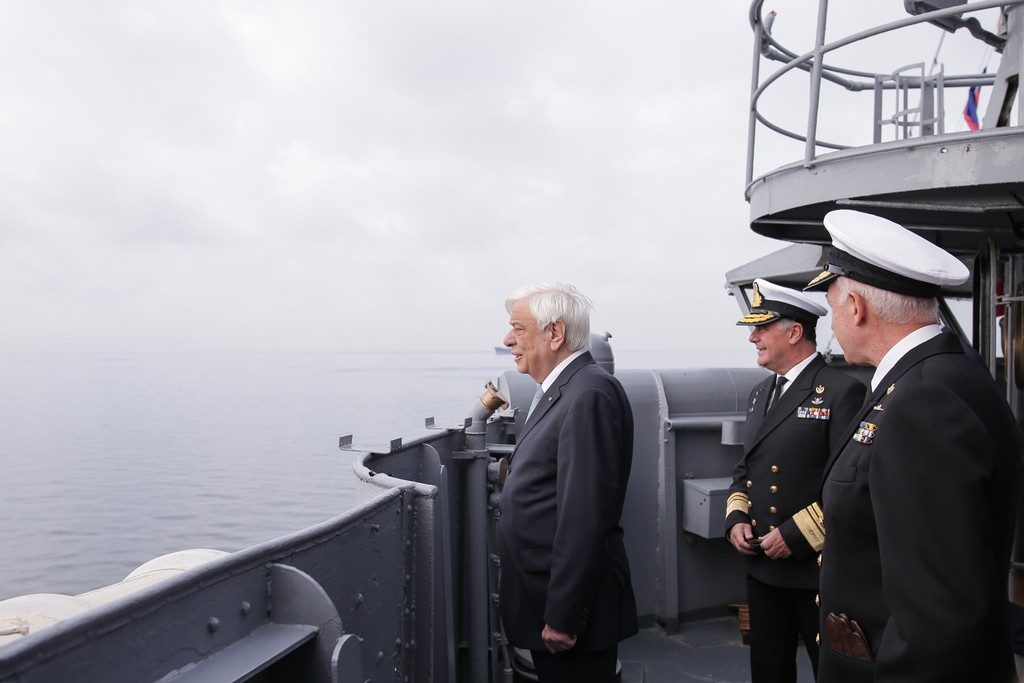 Εκείνες οι παρεκβάσεις του παρελθόντος και ιδίως κατά την επτάχρονη Δικτατορία, δεν είναι παρά διαλείμματα επίορκων Αξιωματικών, που σε καμία περίπτωση δεν εξέφρασαν την πλειοψηφία των Ενόπλων Δυνάμεων. Και σήμερα, τούτην την ώρα, οι Ένοπλες Δυνάμεις, το Πολεμικό μας Ναυτικό, όχι απλώς στέκονται στο ύψος των περιστάσεων, αλλά υπερασπίζονται την Πατρίδα, τον Λαό μας και το Έθνος μας, στον ύψιστο βαθμό. Είμαστε ευγνώμονες για τις Ένοπλες Δυνάμεις. Και ταυτοχρόνως δείχνουν πόσο υπηρετούν αυτή την βασική αρχή, την οποία τόνισα προηγουμένως. Η Ελλάδα ήταν κοιτίδα της Δημοκρατίας, και σήμερα παραμένει, να υπερασπίζεται την Δημοκρατία, όχι μόνο στον Τόπο μας, στην Ευρώπη και διεθνώς, έτσι και οι Ένοπλες Δυνάμεις, είναι εκείνες οι οποίες συμπαρατάσσονται σ΄ αυτόν τον μεγάλο αγώνα.