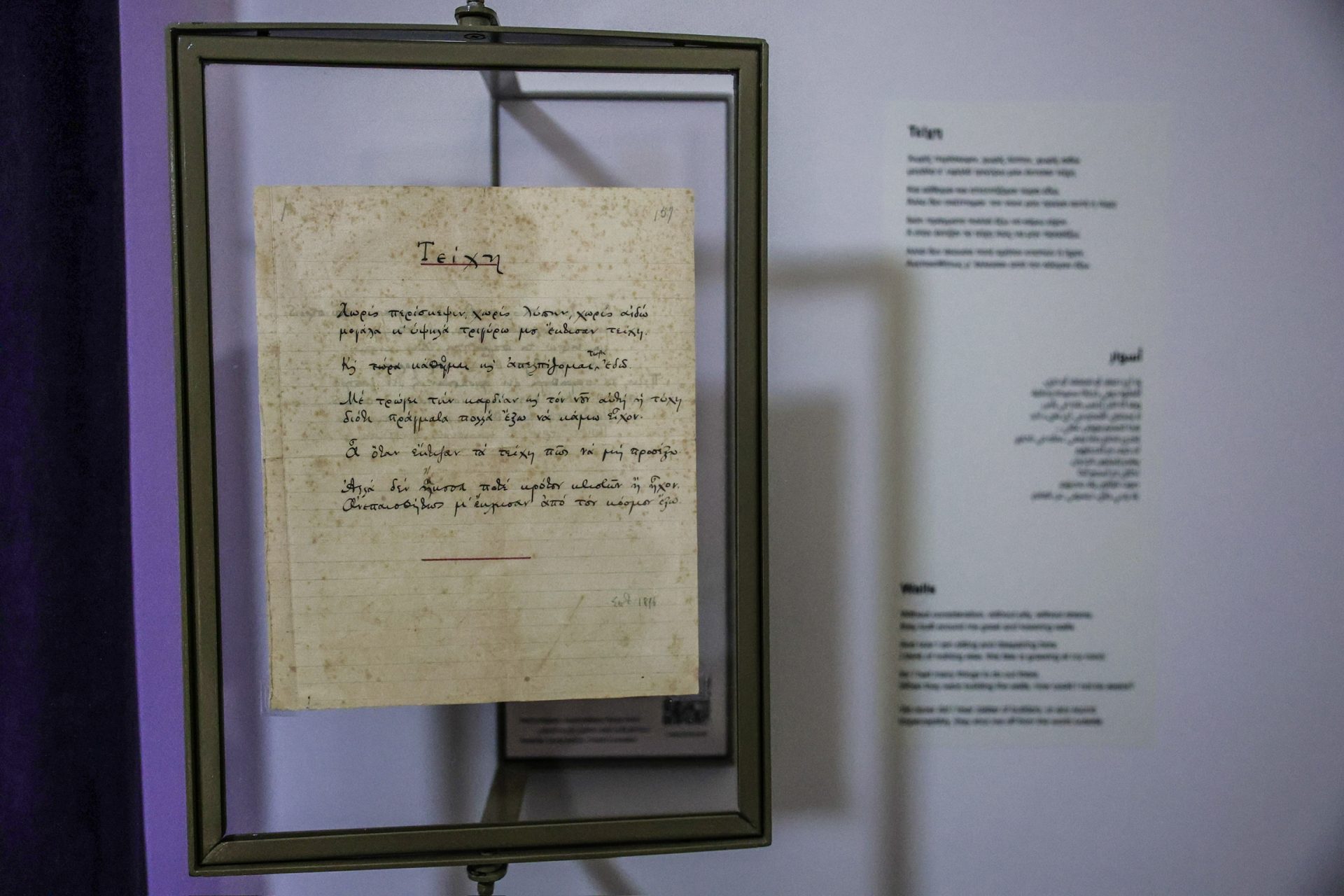 «Με χαρά και συγκίνηση εγκαινίασα την ανακαινισμένη Οικία Καβάφη στην Αλεξάνδρεια, έργο που ανέλαβε και υλοποίησε με ιδιαίτερη φροντίδα το Ίδρυμα Ωνάση. Η ανάδειξη αυτού του χώρου, όπου ακόμη κυκλοφορεί το πνεύμα της μοναδικής καβαφικής ποίησης, αποτελεί μέγιστη προσφορά όχι μόνο στην ελληνική παροικία της Αλεξάνδρειας και στους Έλληνες μελετητές και λάτρεις του καβαφικού έργου, αλλά και στην παγκόσμια κοινότητα, που αναγνώρισε στους στίχους του έναν μεγάλο ποιητή του 20ου αιώνα».