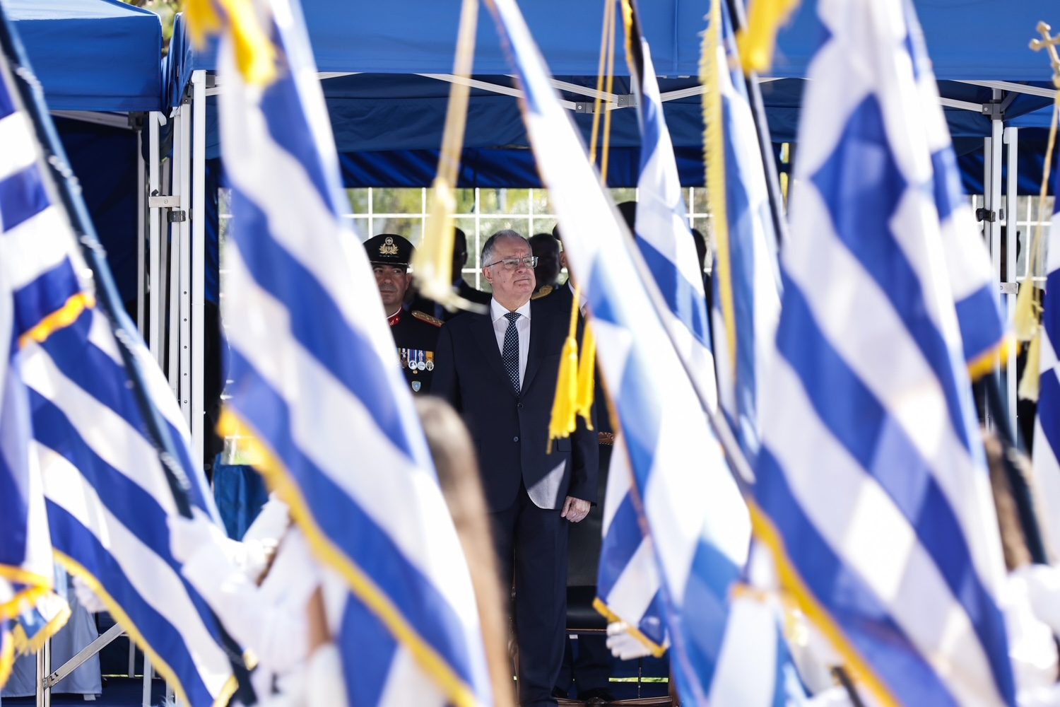 Το παράδειγμά τους, η φιλοπατρία τους, η αυταπάρνησή τους μας καθοδηγούν, ώστε σήμερα ενωμένοι στα μεγάλα και τα σπουδαία να ανταπεξέλθουμε σε κάθε δυσκολία της εποχής και να φροντίζουμε για μια πατρίδα ισχυρή απέναντι σε κάθε απειλή, για μια πατρίδα σύγχρονη και προοδευμένη, για μια πατρίδα πυλώνα σταθερότητας και ασφάλειας στην ευαίσθητη περιοχή της νοτιοανατολικής Μεσογείου που βρισκόμαστε.