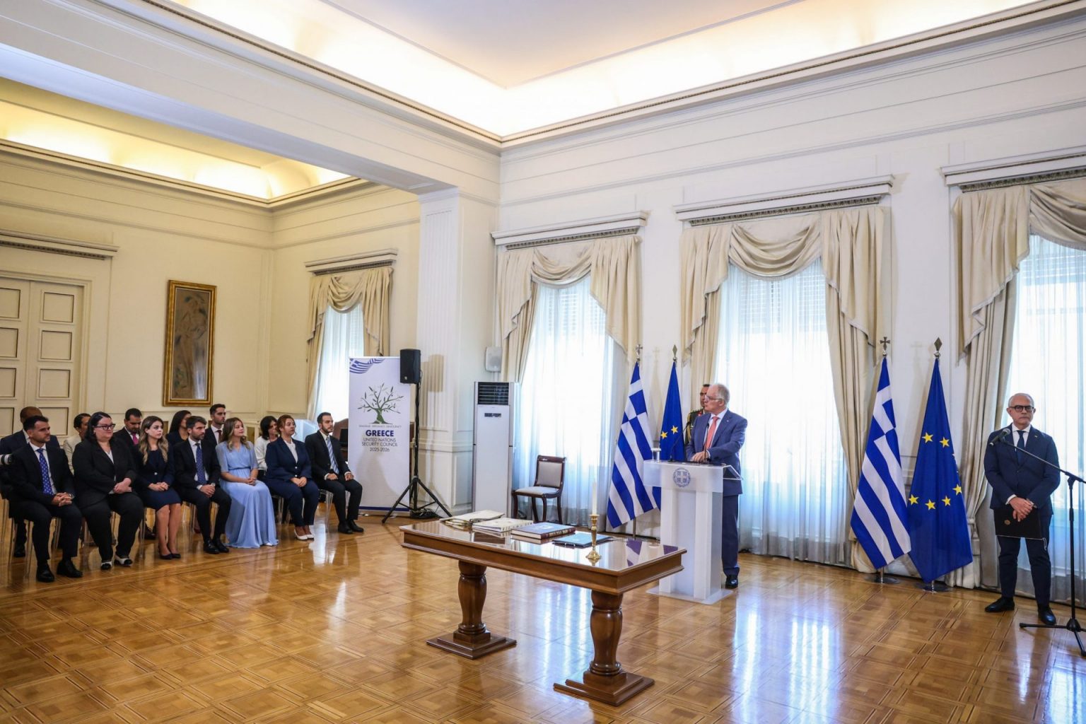 The President of the Hellenic Republic Constantine An. Tassoulas attended the swearing-in ceremony and awarded diplomas to the 29th Promotion of Candidate Embassy Attachés at