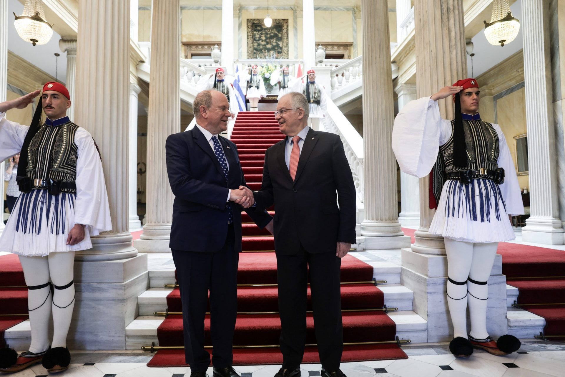 PRINCE ALBERT II (unofficial translation): Mr. President of the Hellenic Republic, a very big “thank you” for the warm welcome you have extended to us here at the Presidential Mansion. I thank you warmly, both personally and on behalf of my delegation.
