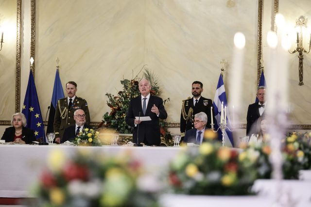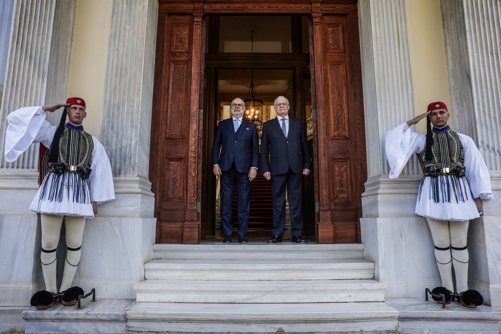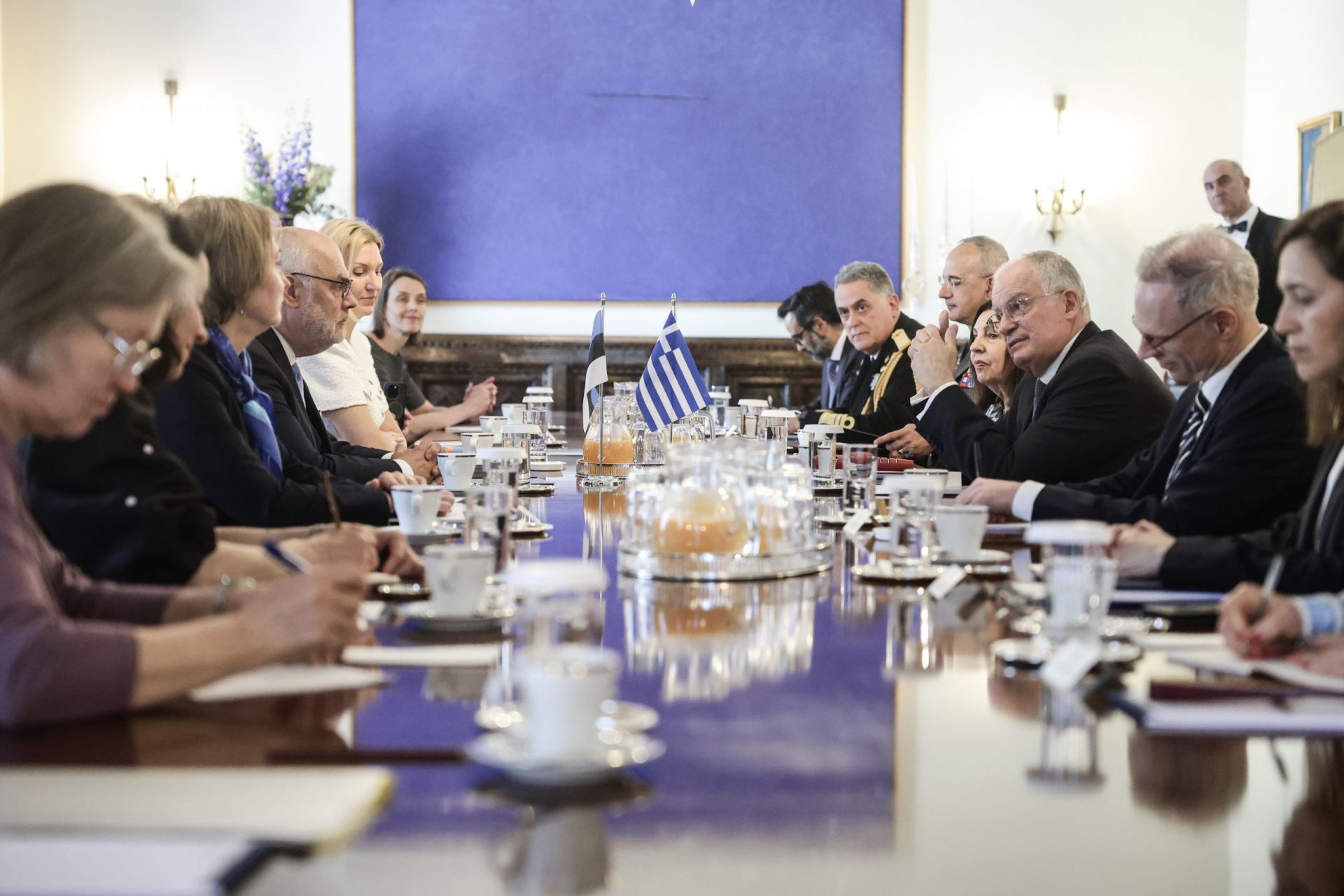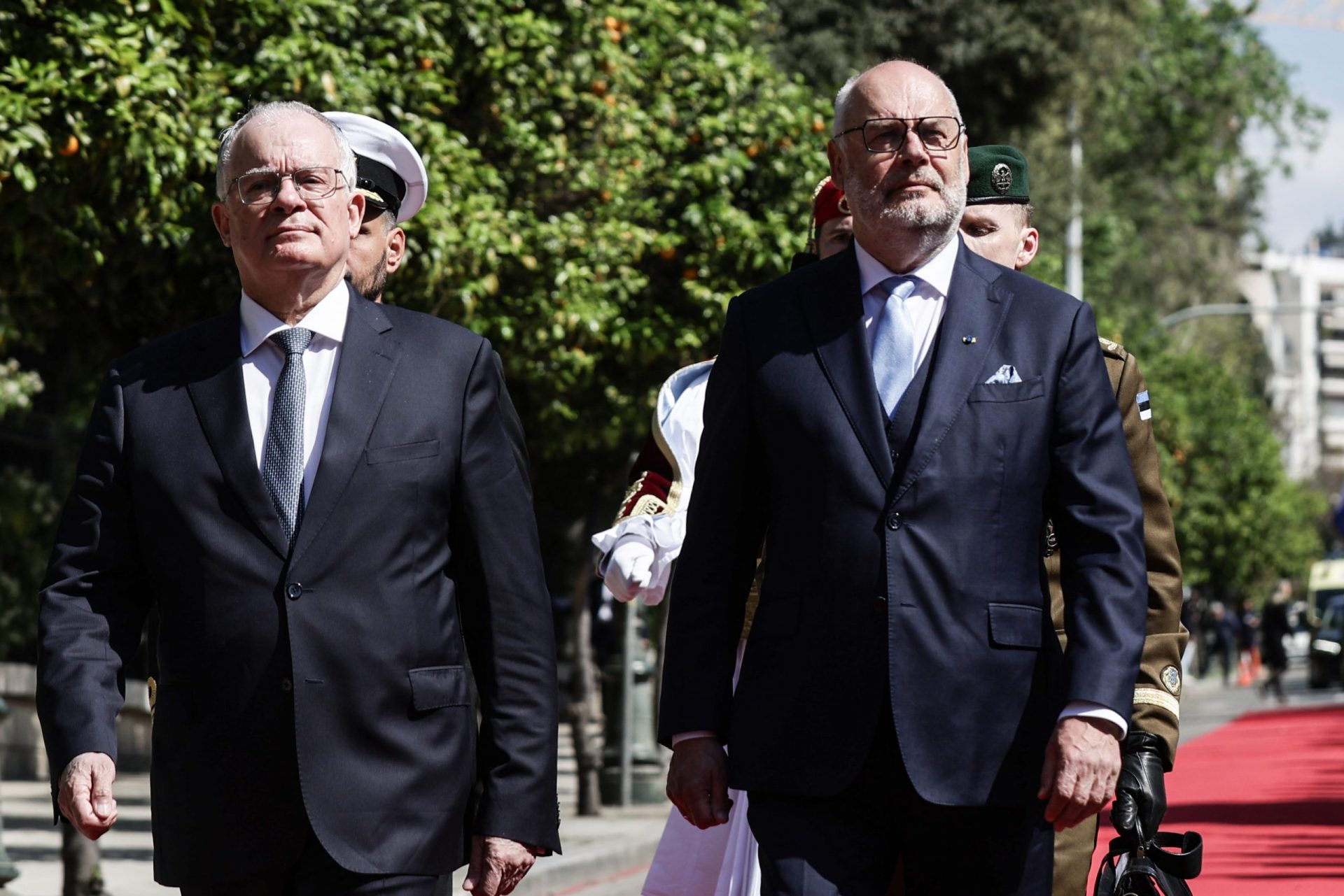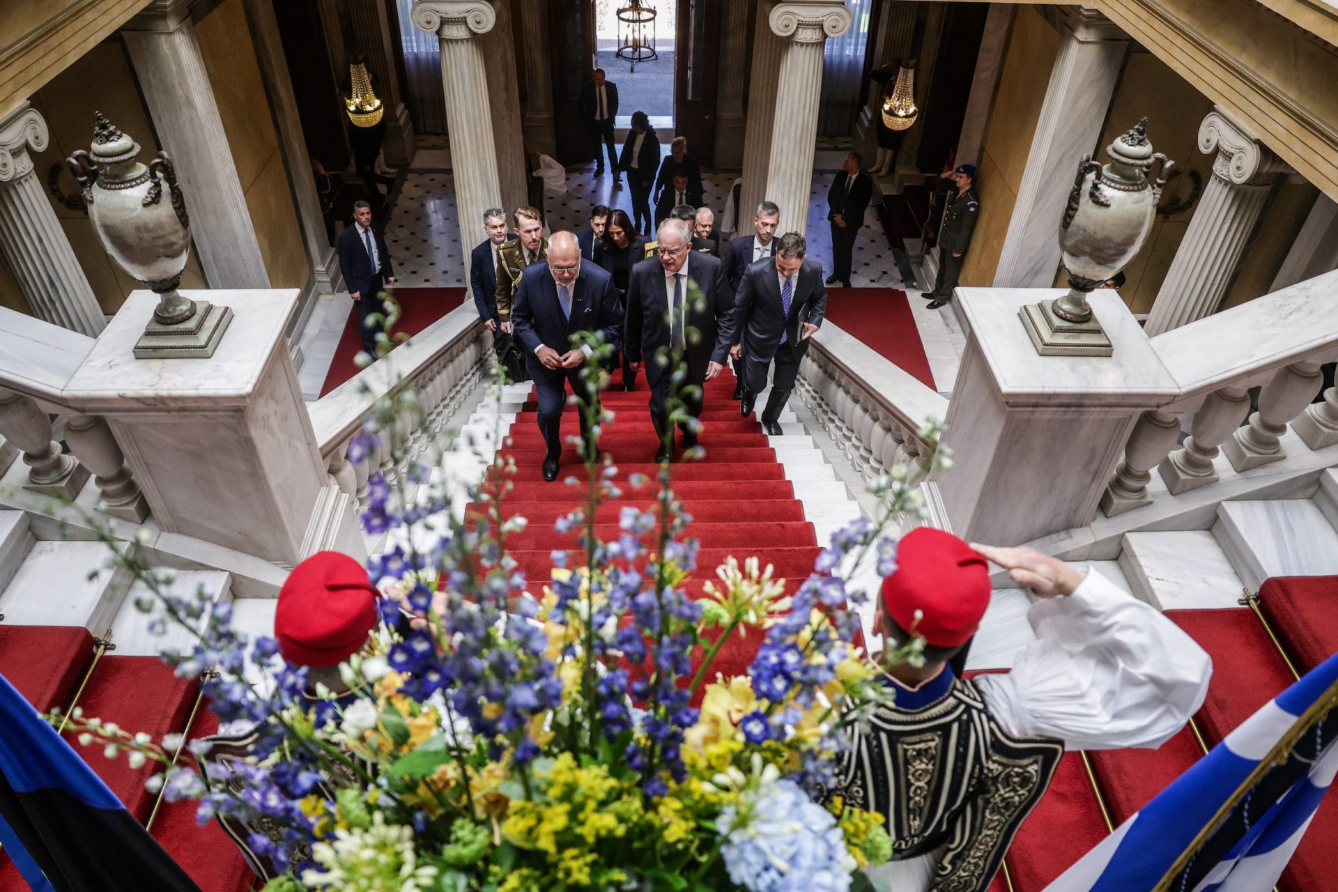 CONSTANTINE TASSOULAS: Dear Mr. President, it is with great pleasure that I welcome you to Athens and to the Presidential Mansion, four years after the last visit to Tallinn by the President of the Hellenic Republic, on the occasion of the 100th anniversary of the establishment of diplomatic relations between Greece and Estonia.