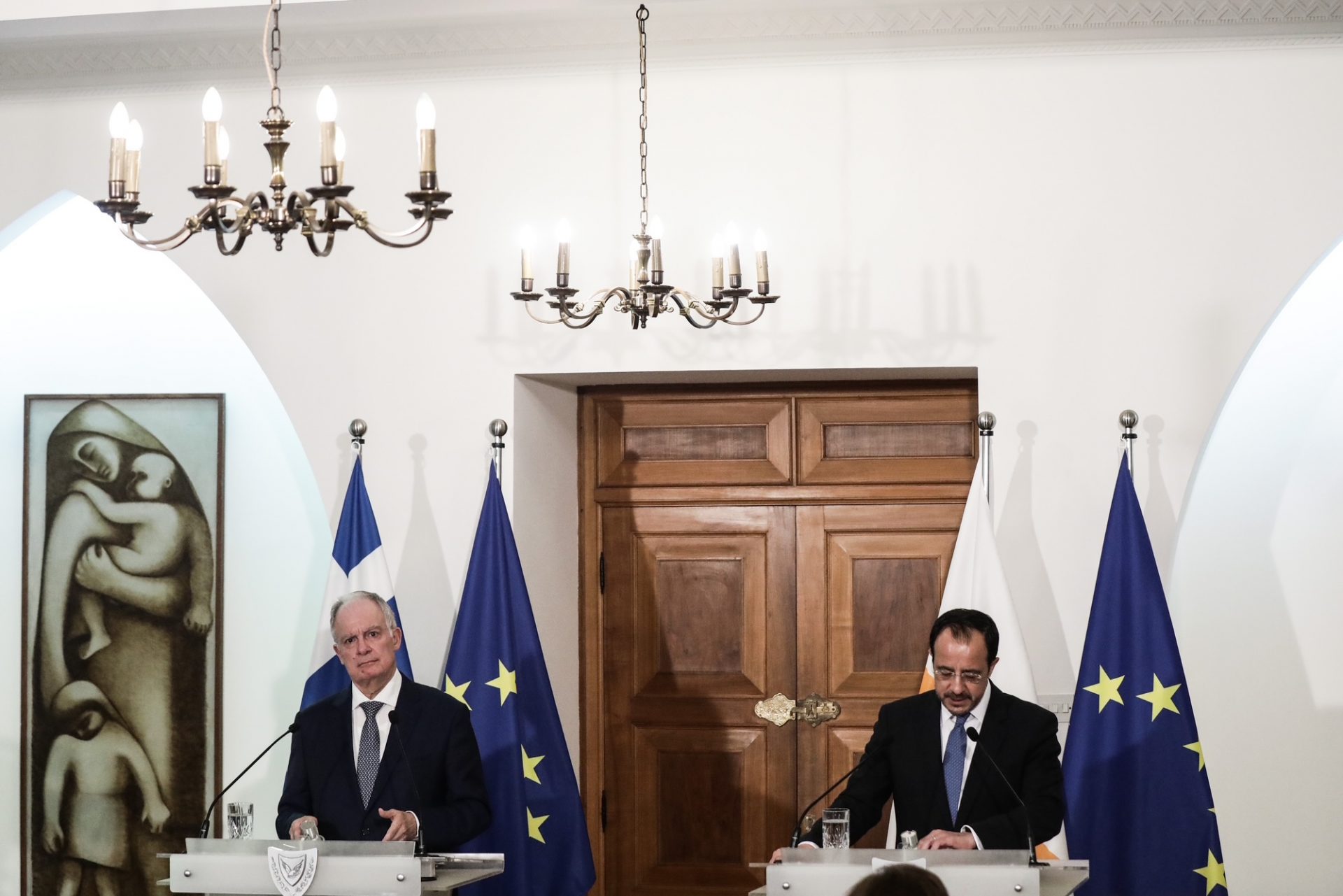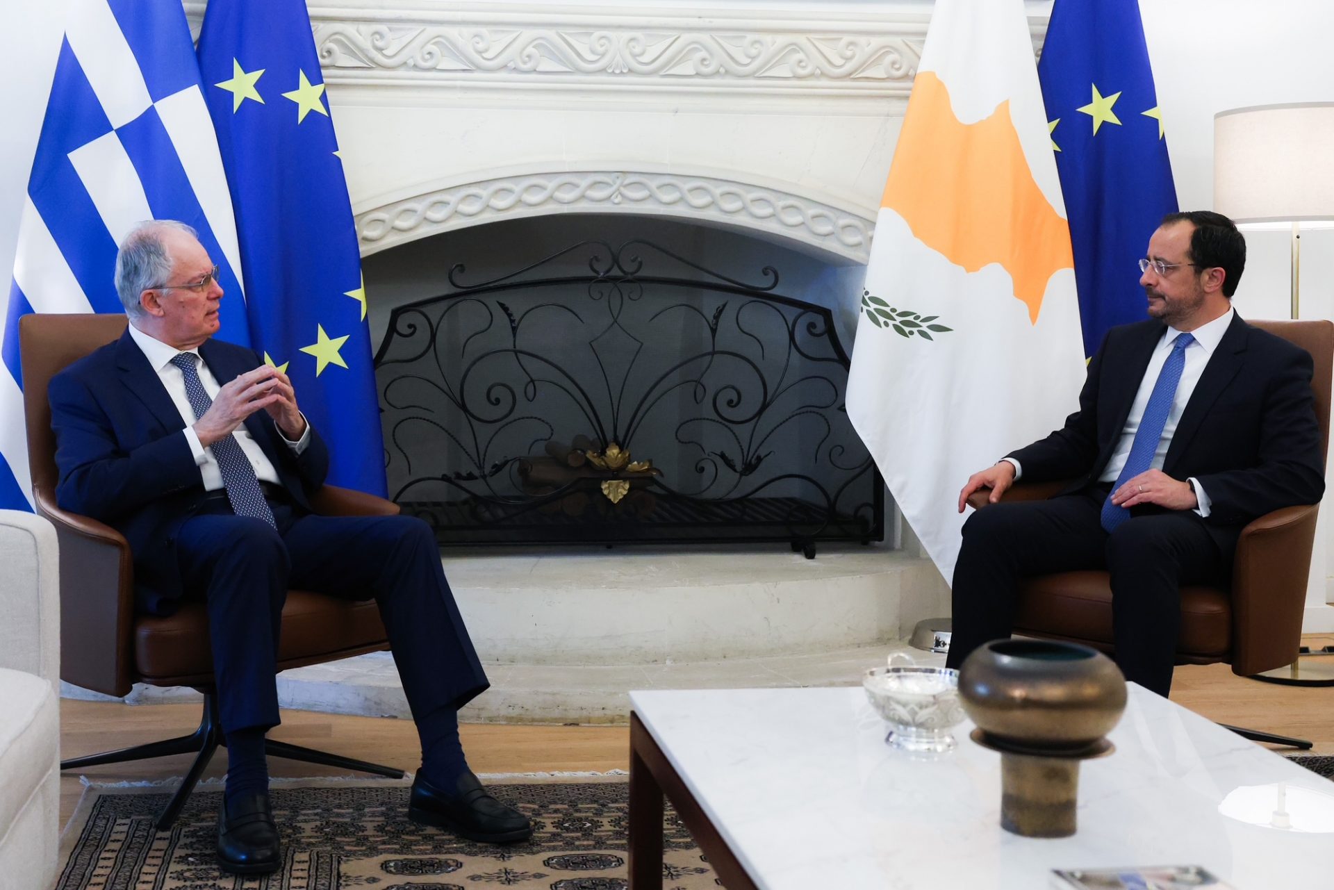 «Κύριε Πρόεδρε της Κυπριακής Δημοκρατίας, αγαπητέ μου Νίκο, ευχαριστώ για τα πολύ θερμά λόγια αλλά και για την θερμή υποδοχή που μου επιφυλάξατε.