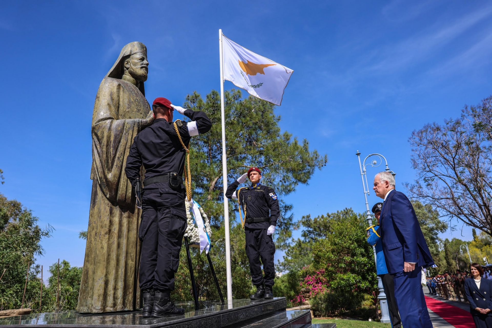 Νωρίτερα, σε ειδική τελετή, ο κ. Χριστοδουλίδης απένειμε στον Πρόεδρο της Δημοκρατίας το παράσημο «Μέγα Περιδέραιο του Τάγματος Μακαρίου Γ’».