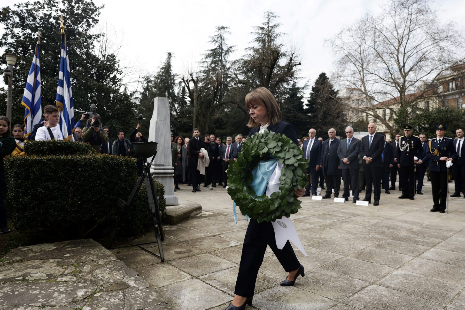Η κυρία Σακελλαροπούλου κατέθεσε στεφάνι στο Ηρώο Μπιζανομάχων και έκανε την ακόλουθη δήλωση: