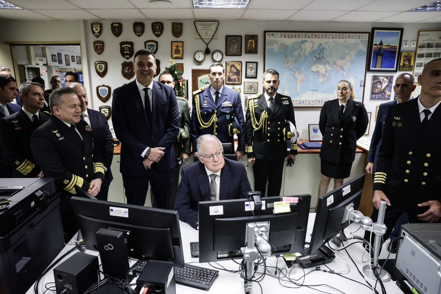 Στη συνέχεια ο κύριος Τασούλας μετέβη στο Εθνικό Κέντρο Επιχειρήσεων και αφού αντάλλαξε ευχές με το προσωπικό βάρδιας του Εθνικού Κέντρου Επιχειρήσεων, επικοινώνησε με τους επικεφαλής των Επιτηρητικών Φυλακίων «5» Νέας Βύσσας Έβρου και «Φάρου Καλολίμνου», με τον Κυβερνήτη της Φρεγάτας «ΕΛΛΗ» και τον Διοικητή εν πλω της επιχείρησης της Ευρωπαϊκής Ένωσης «IRINI» καθώς και με τον επικεφαλής κλιμακίου στην 133 Σμηναρχία Μάχης (readiness) στο Καστέλι της Κρήτης και δήλωσε: