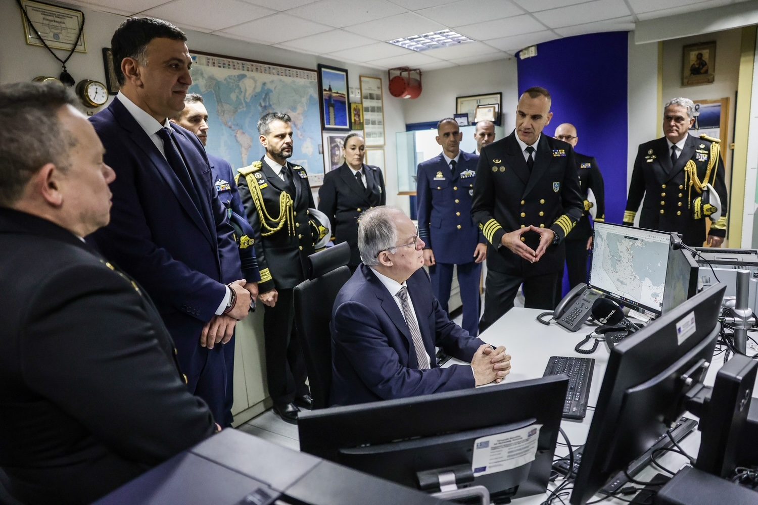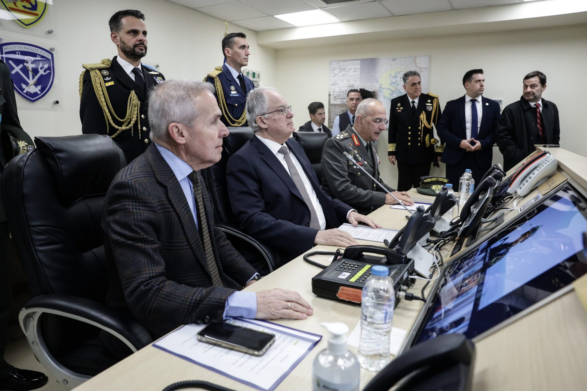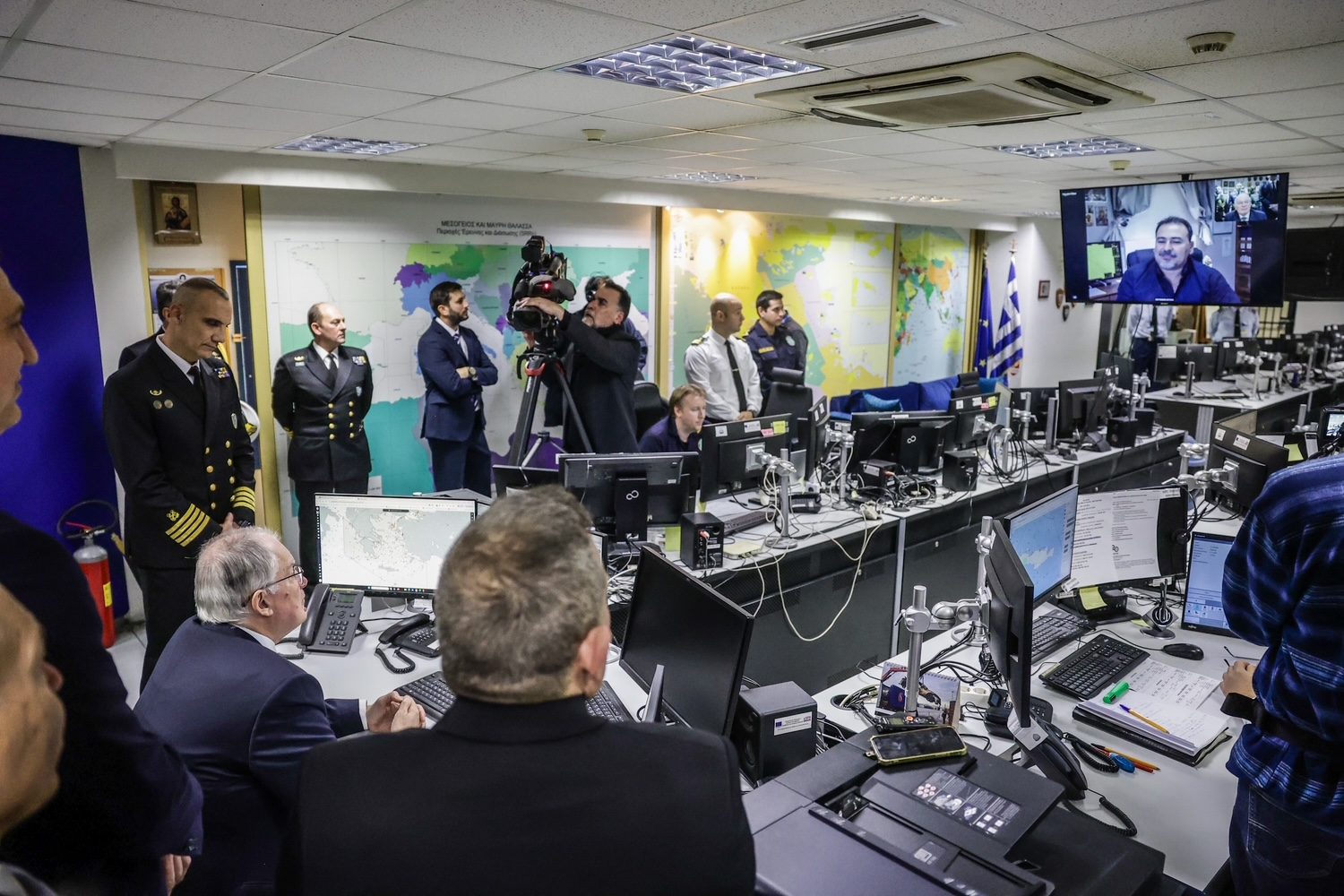 Ο Πρόεδρος της Δημοκρατίας μετέβη στο Ενιαίο Κέντρο Συντονισμού Έρευνας και Διάσωσης του Λιμενικού Σώματος – Ελληνικής Ακτοφυλακής και αντάλλαξε ευχές με τα στελέχη και το προσωπικό βάρδιας. Στη συνέχεια συνομίλησε με τον πλοίαρχο του «MARAN ARTEMIS» Νικόλαο Λουκά και με τον πλοίαρχο του «Intuition» Αγαμέμνονα Θεοδωρόπουλο.