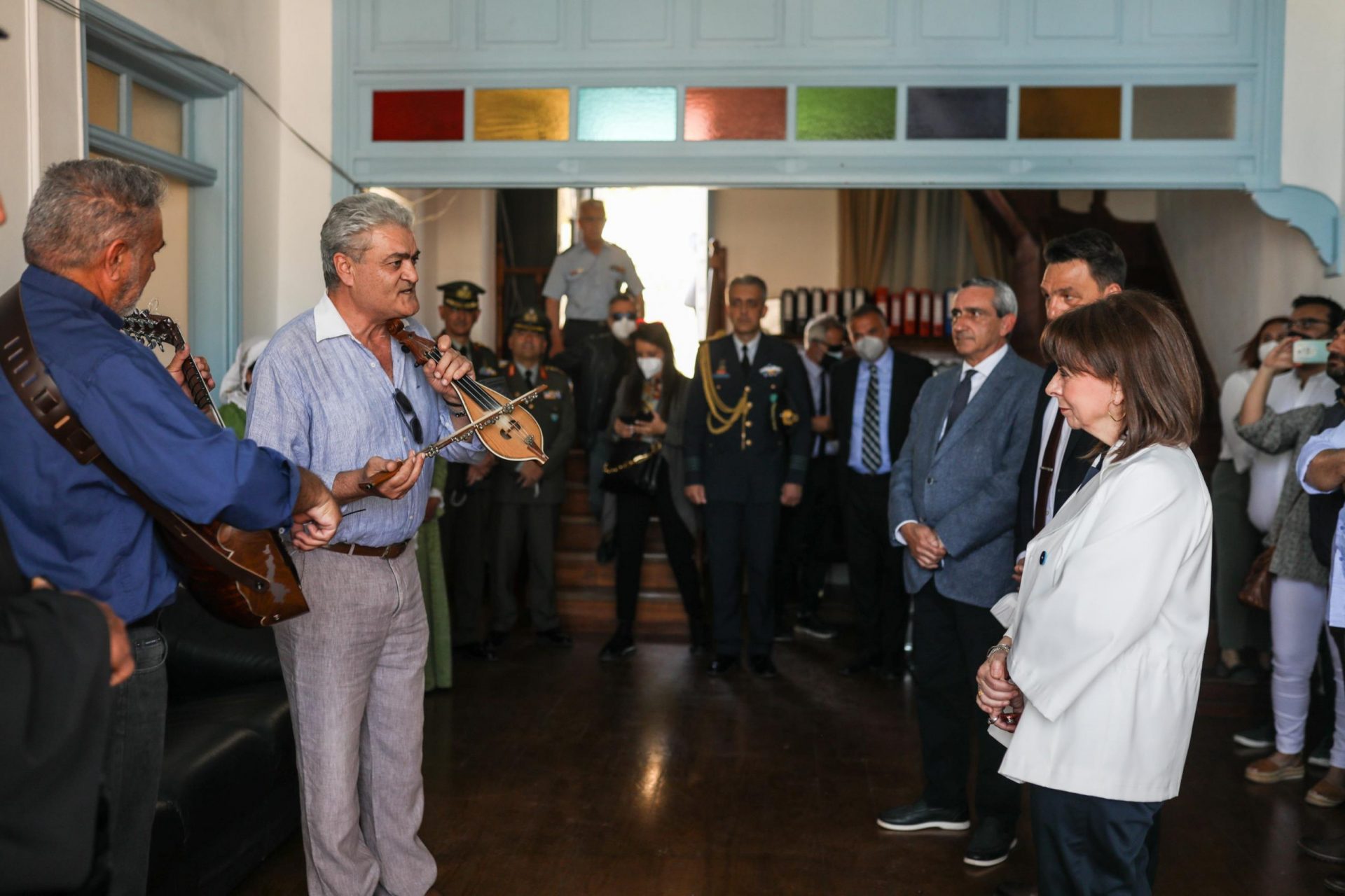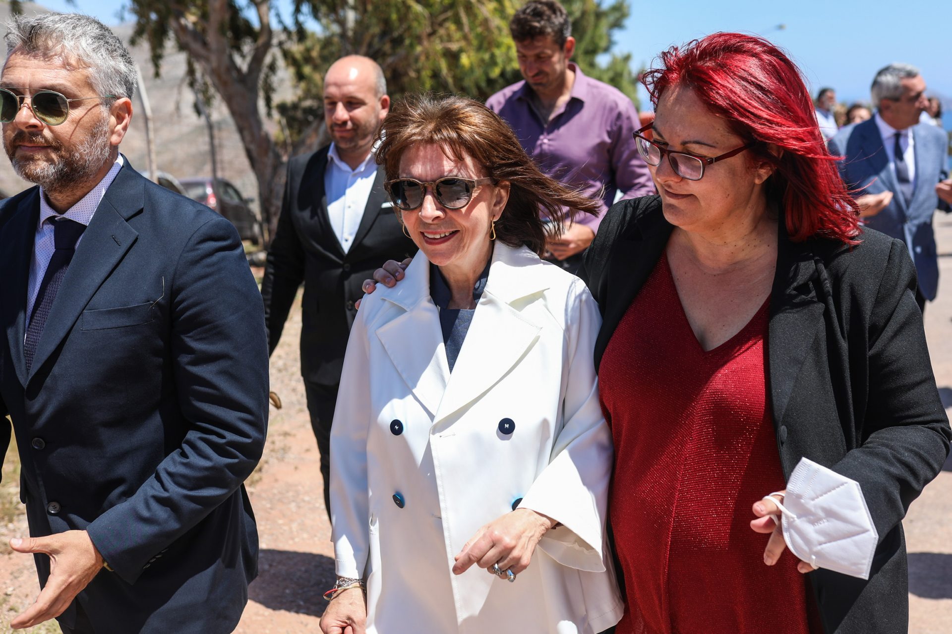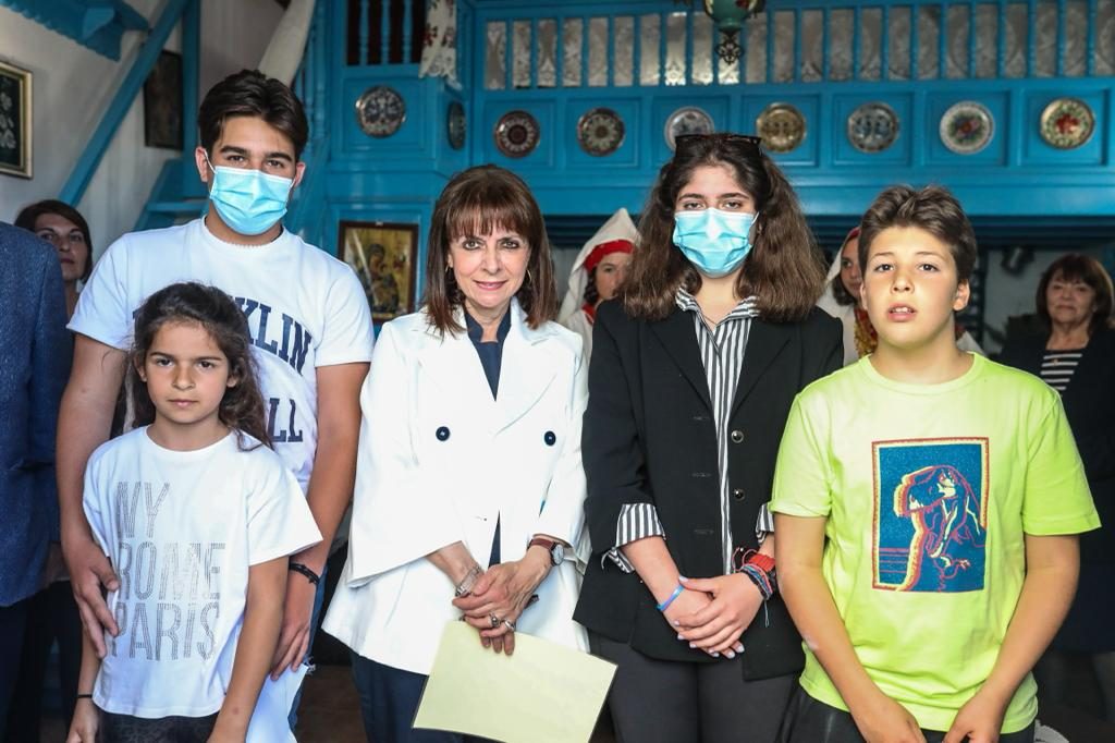 Η Πρόεδρος της Δημοκρατίας Κατερίνα Σακελλαροπούλου επισκέφθηκε τη Χάλκη, αντάλλαξε ευχές με τους αξιωματικούς, υπαξιωματικούς και οπλίτες τoυ Επιτηρητικού Φυλακίου, ενημερώθηκε για τη λειτουργία του φωτοβολταϊκού πάρκου και συνομίλησε με τους νησιώτες στο λιμάνι.