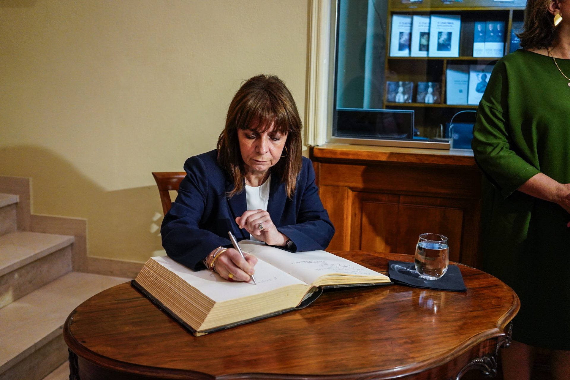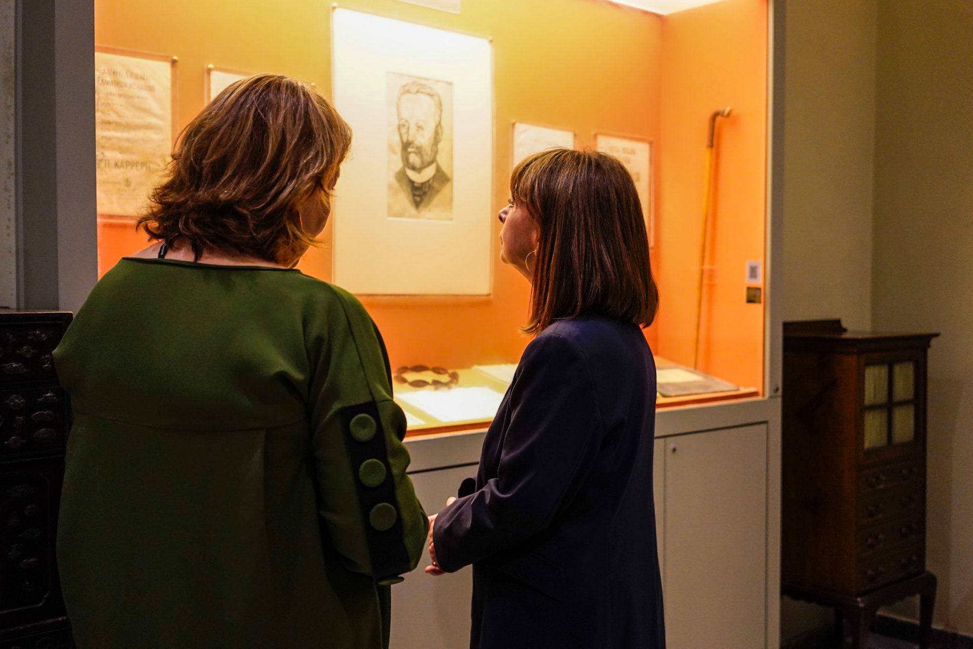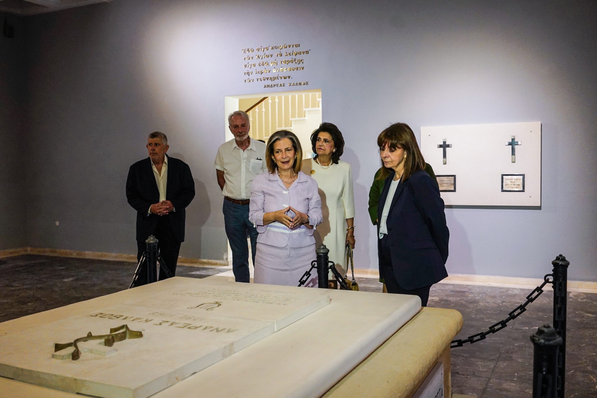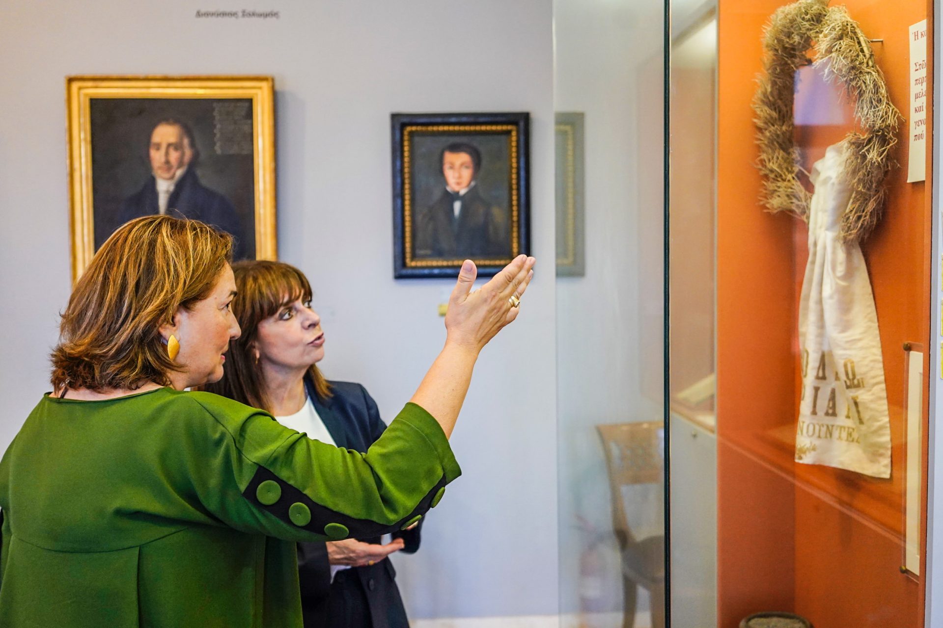 Το μεσημέρι, πριν από την αναγόρευσή της σε Επίτιμη Διδάκτορα του Τμήματος Περιβάλλοντος του Ιονίου Πανεπιστημίου, η κυρία Σακελλαροπούλου ξεναγήθηκε στο Μουσείο Σολωμού και Επιφανών Ζακυνθίων.