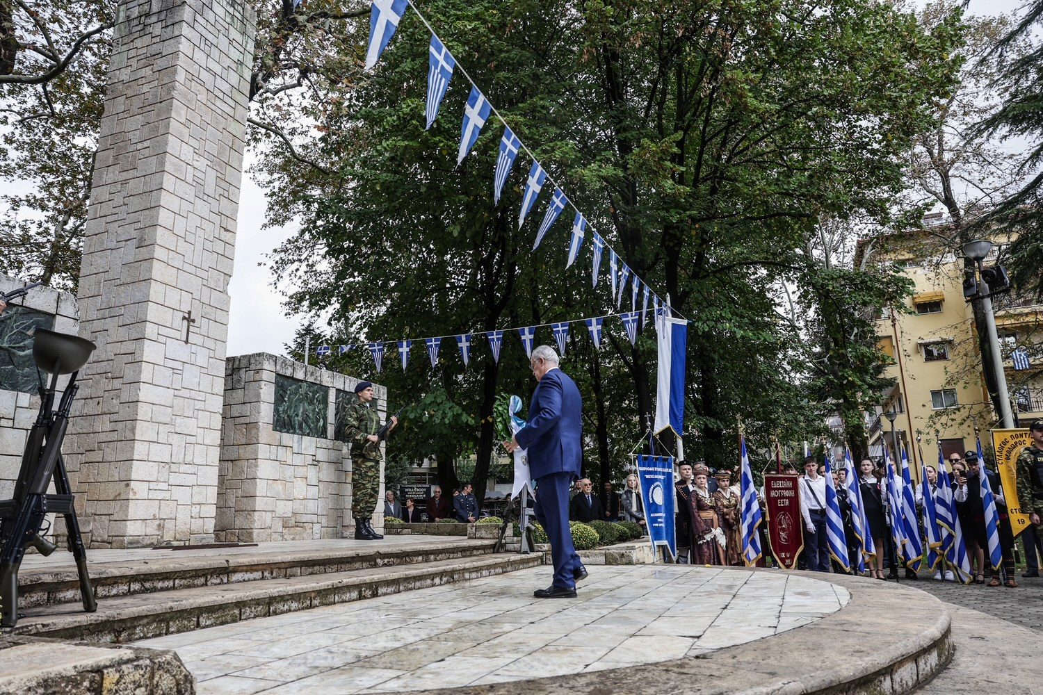 Ο κ. Τασούλας, μετά τη δοξολογία στον Μητροπολιτικό Ναό Αγίας Σκέπης, κατέθεσε στεφάνι στο Ηρώο της πόλης και έκανε την ακόλουθη δήλωση: