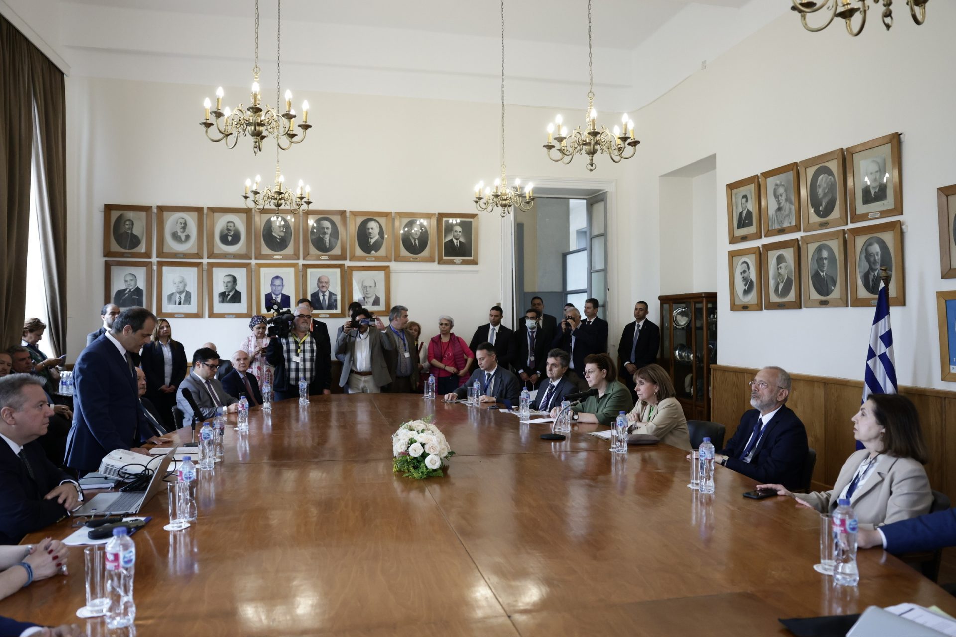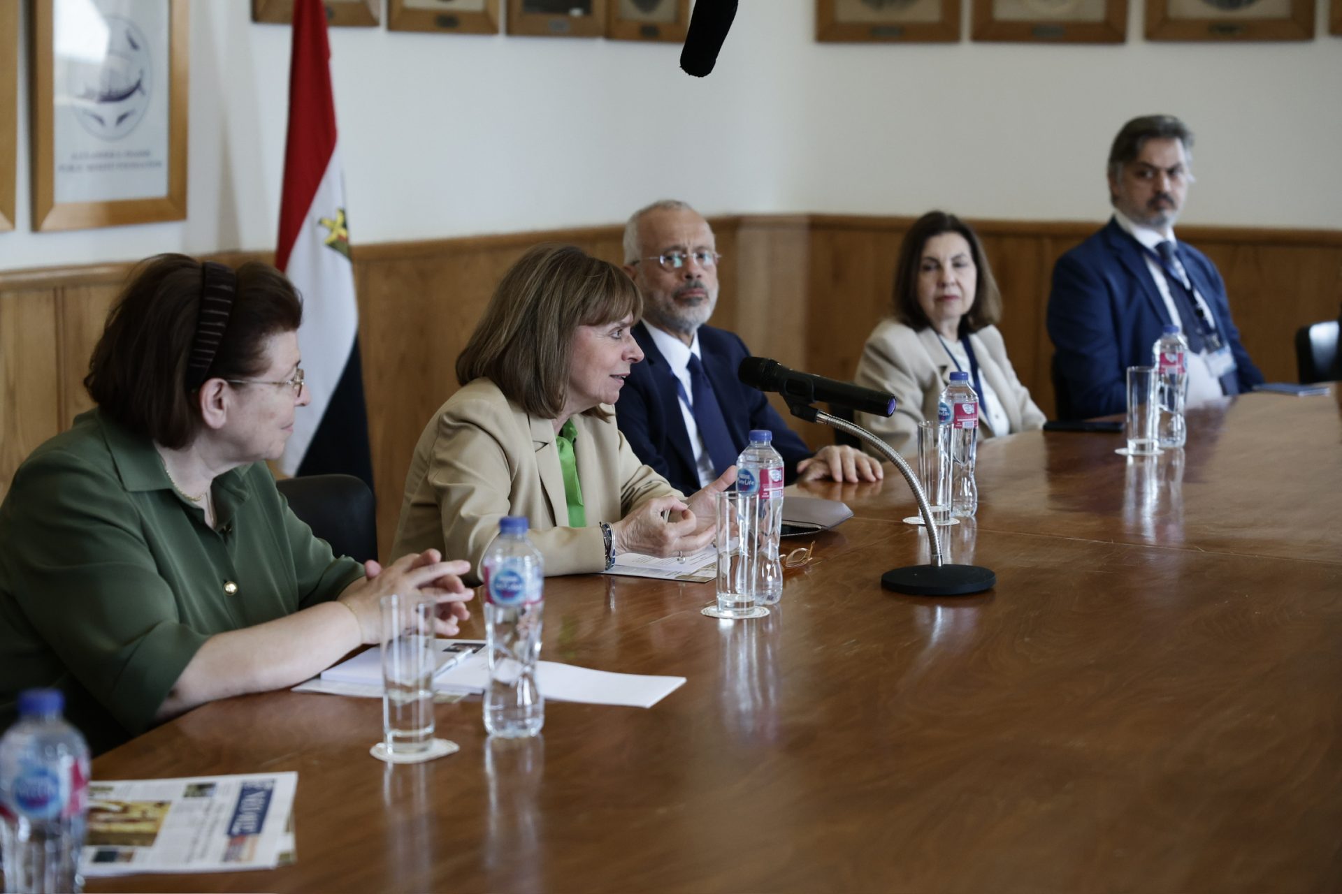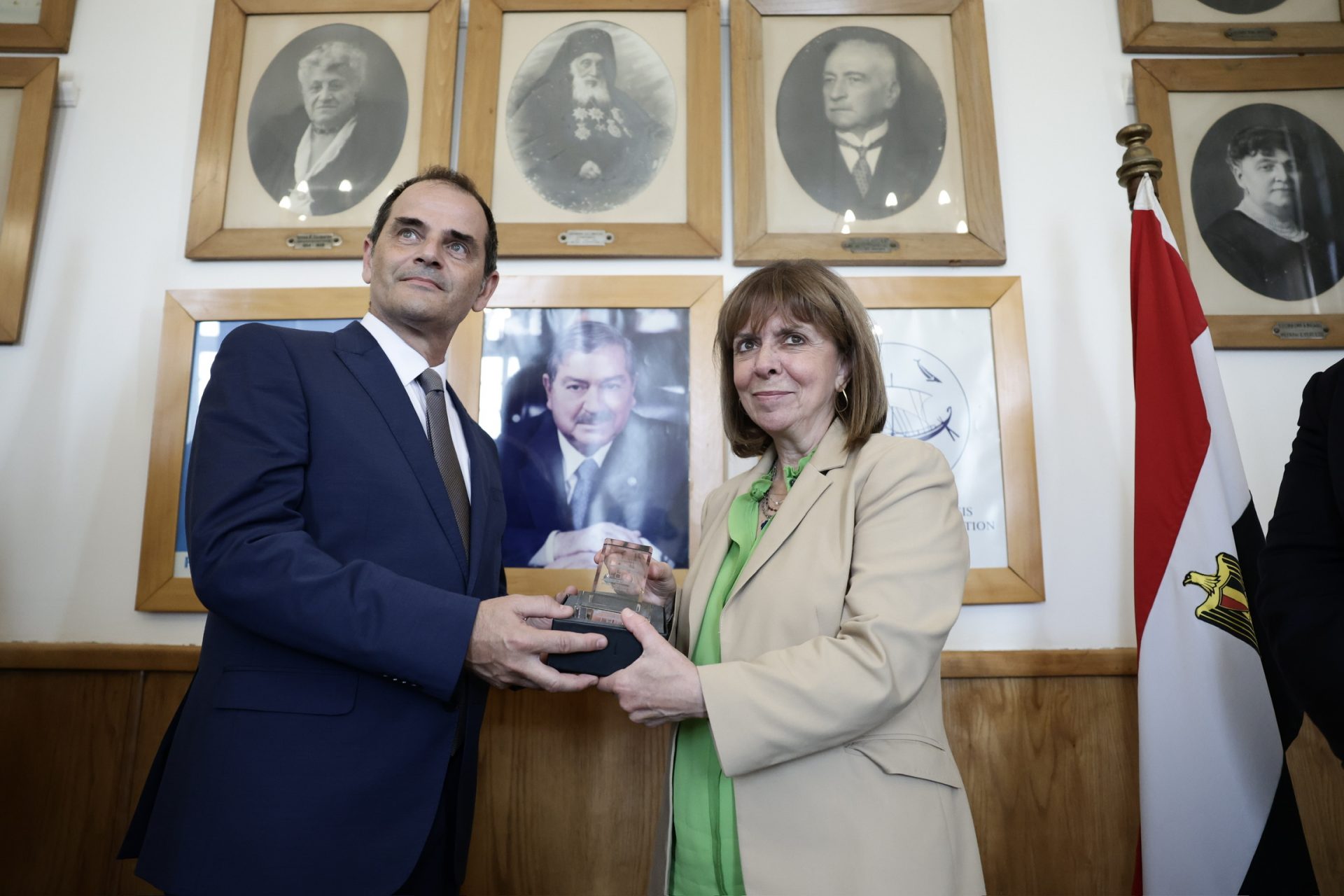 H Πρόεδρος της Δημοκρατίας Κατερίνα Σακελλαροπούλου, στο πλαίσιο της επίσκεψής της στην Αλεξάνδρεια της Αιγύπτου προκειμένου να εγκαινιάσει την ανακαινισμένη Οικία Καβάφη μετά από πρόσκληση του Προέδρου του Ιδρύματος Ωνάση Αντώνη Παπαδημητρίου, μετέβη στα γραφεία της Eλληνικής Kοινότητας, όπου την υποδέχθηκε ο Πρόεδρος Ανδρέας Βαφειάδης, παρουσία του Προέδρου της Ελληνικής Κοινότητας Καΐρου Χρήστου Καβαλή.