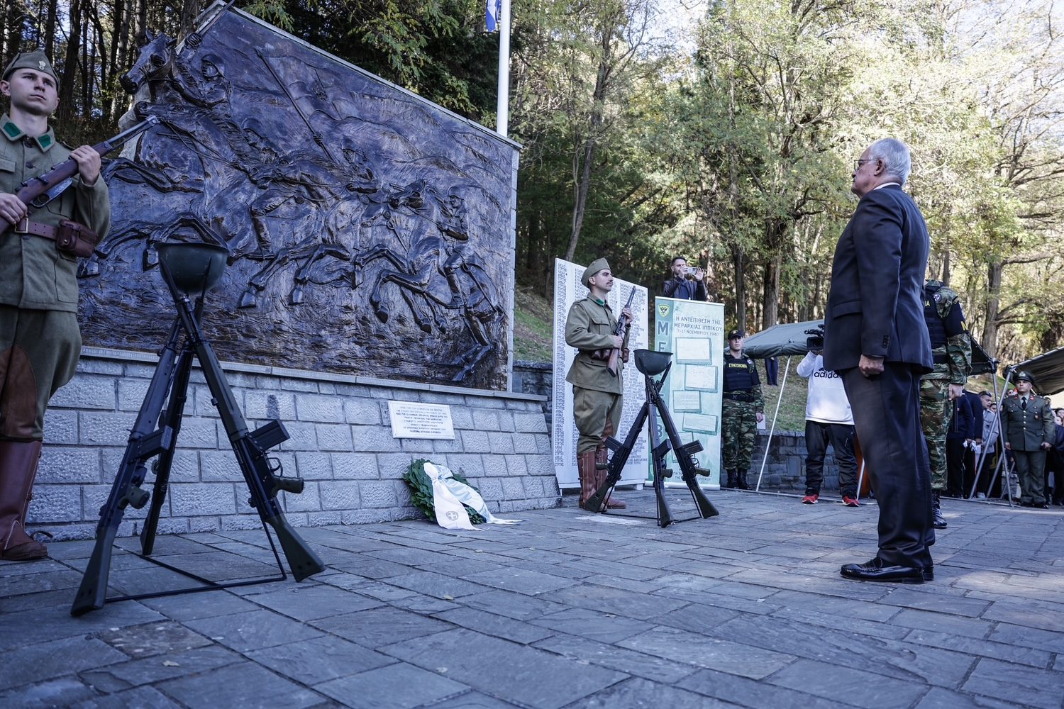 Στη συνέχεια, ο Πρόεδρος της Δημοκρατίας κατέθεσε στεφάνι στο Μνημείο Πεσόντων Ελληνικού Ιππικού 1940.
