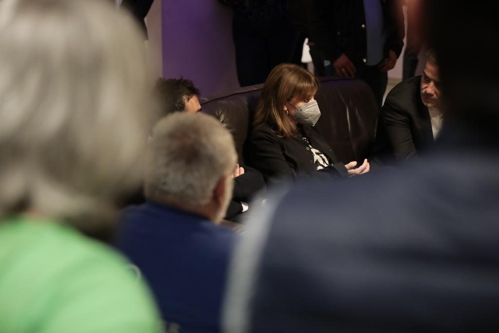 Η κυρία Σακελλαροπούλου συζήτησε με τους ανθρώπους που φιλοξενούνται στη δομή, άκουσε τις προσωπικές τους ιστορίες και τα προβλήματά τους.