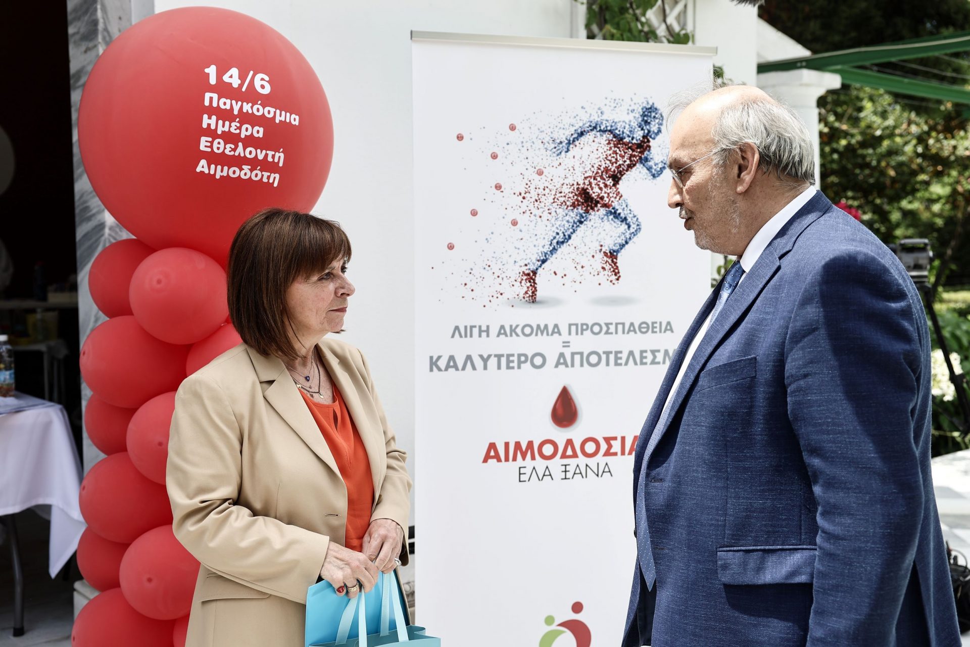 Με αφορμή την Παγκόσμια Ημέρα Εθελοντή Αιμοδότη, η Προεδρία της Δημοκρατίας διοργάνωσε, για τέταρτη συνεχόμενη χρονιά, σε συνεργασία με το Εθνικό Κέντρο Αιμοδοσίας, εθελοντική αιμοδοσία στον κήπο του Προεδρικού Μεγάρου. Στη δράση, η οποία είχε κεντρικό μήνυμα «Ζούμε επειδή ΕΣΥ προσφέρεις-Δώσε αίμα, δώσε πλάσμα, μοιράσου τη ζωή, μοιράσου συχνά», συμμετείχαν εθελοντές αιμοδότες από το Εθνικό Κέντρο και την Προεδρία.