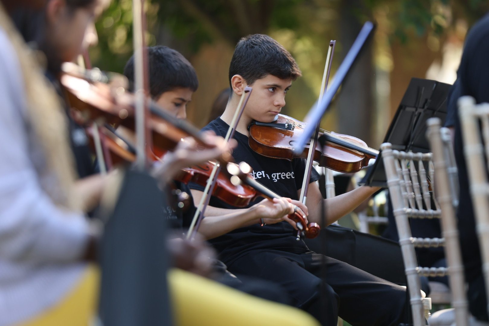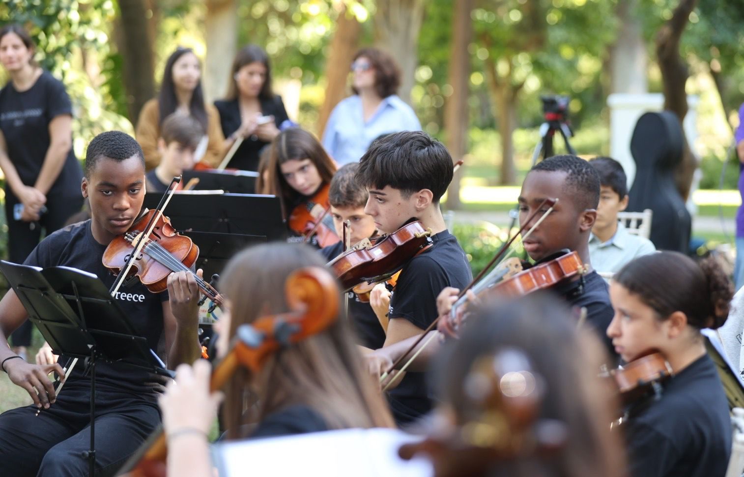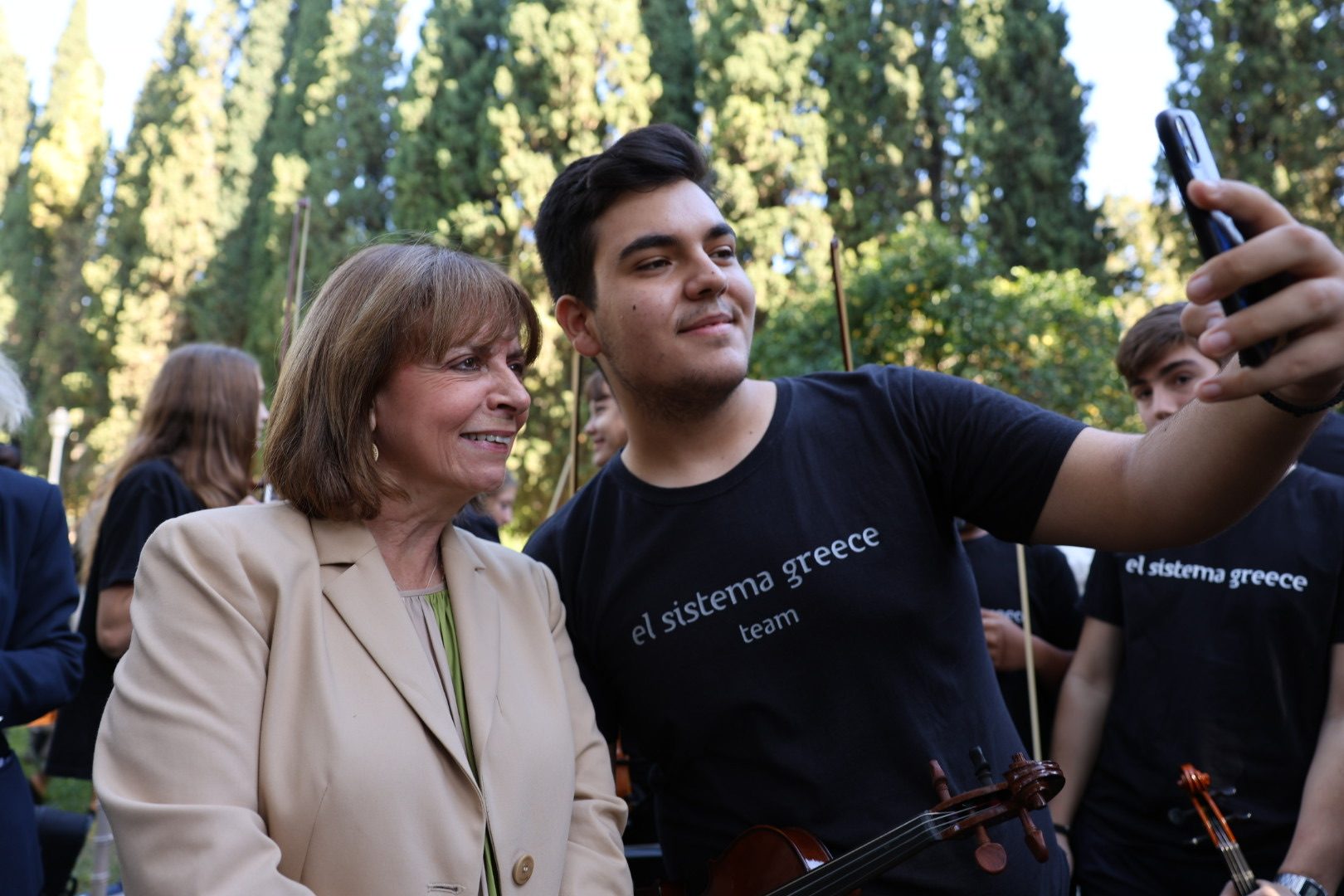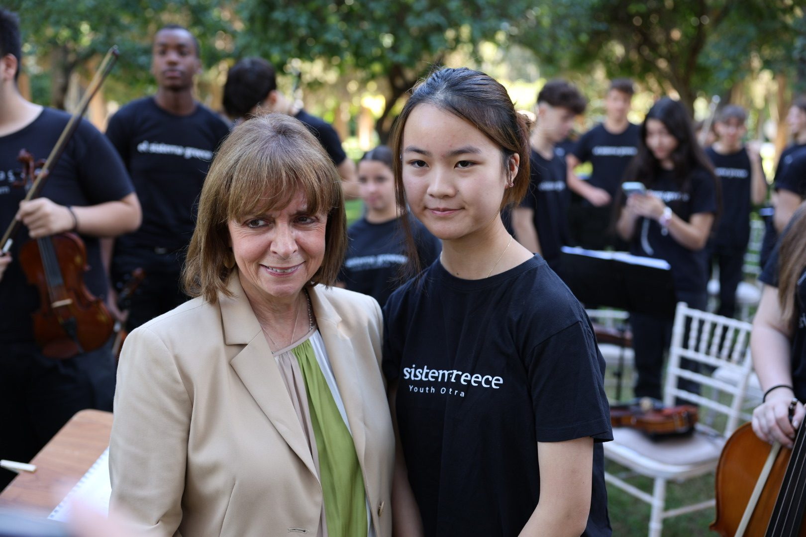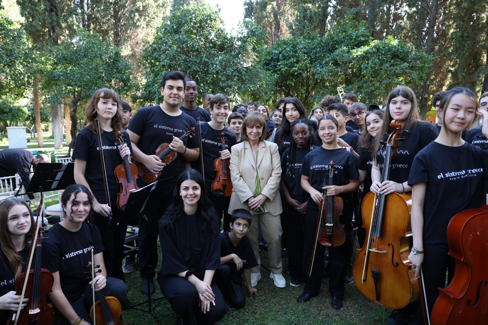 Με πρωτοβουλία της Προέδρου της Δημοκρατίας Κατερίνας Σακελλαροπούλου, διοργανώθηκε στον κήπο του Μεγάρου, σε συνεργασία με τη διαπολιτισμική ορχήστρα El Sistema Greece και τη Γενική Γραμματεία Ευάλωτων Πολιτών και Θεσμικής Προστασίας του Υπουργείου Μετανάστευσης και Ασύλου, η διαδραστική, μουσική εκδήλωση «Γίνε μουσικός ορχήστρας για μια μέρα».
